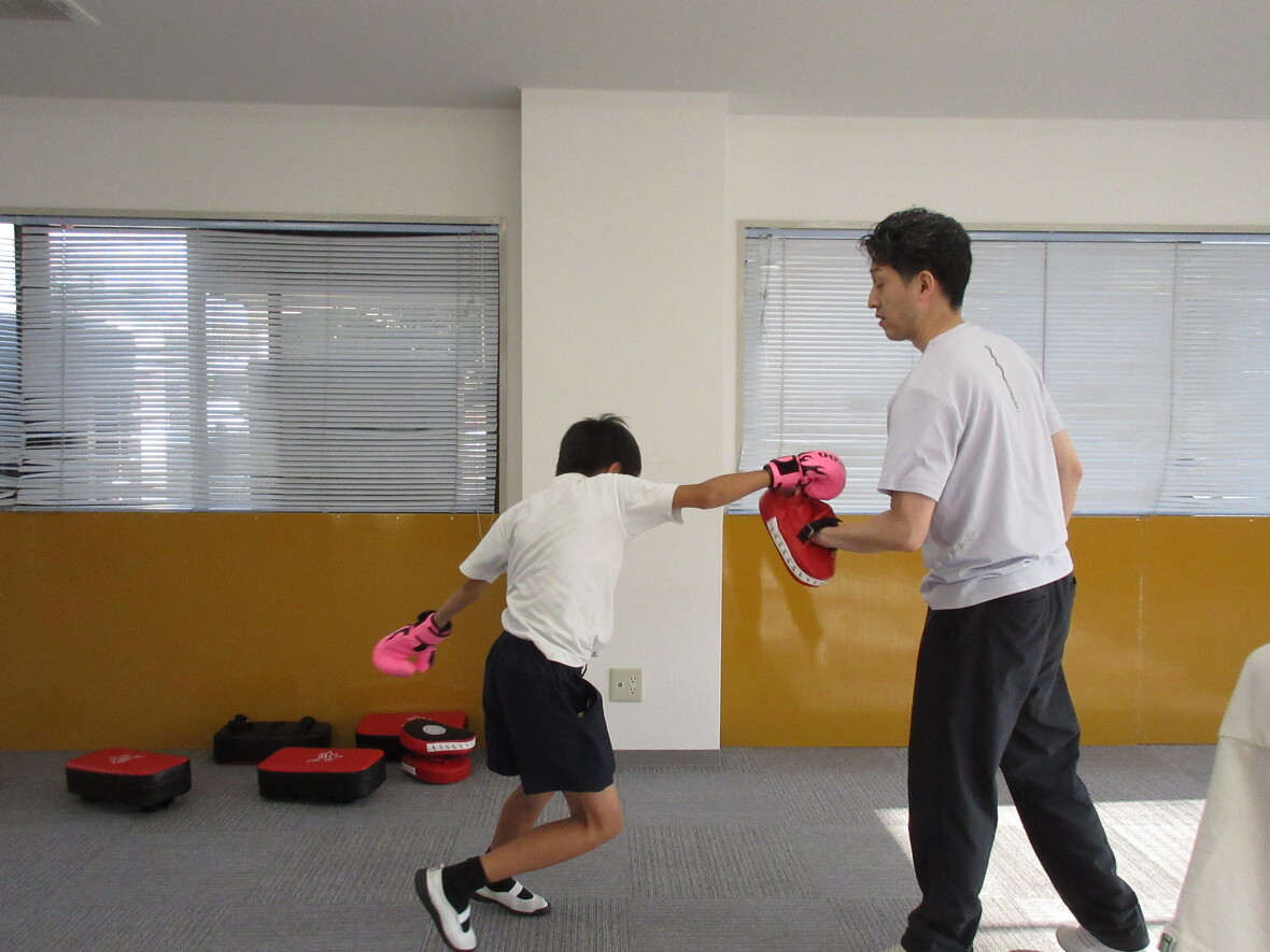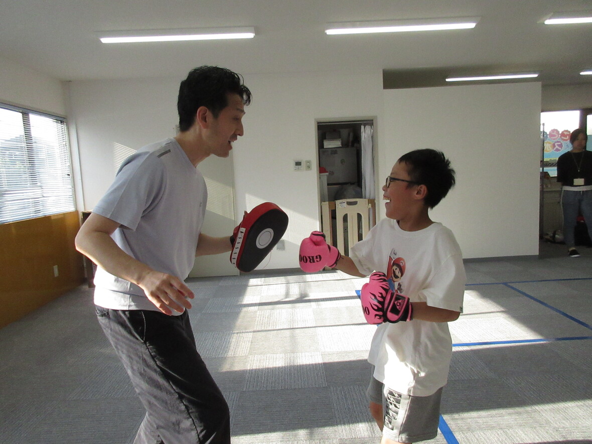 2023年06月27日(火) スタッフブログ パンチフィットネス 今日はパンチフィットネスのプログラムを行いました! グローブなどを使い身体全体でパンチフィットネスを楽しみました! またみんなで大繩跳びをして10回跳ぶことができて子どもたちは大喜びでした♬