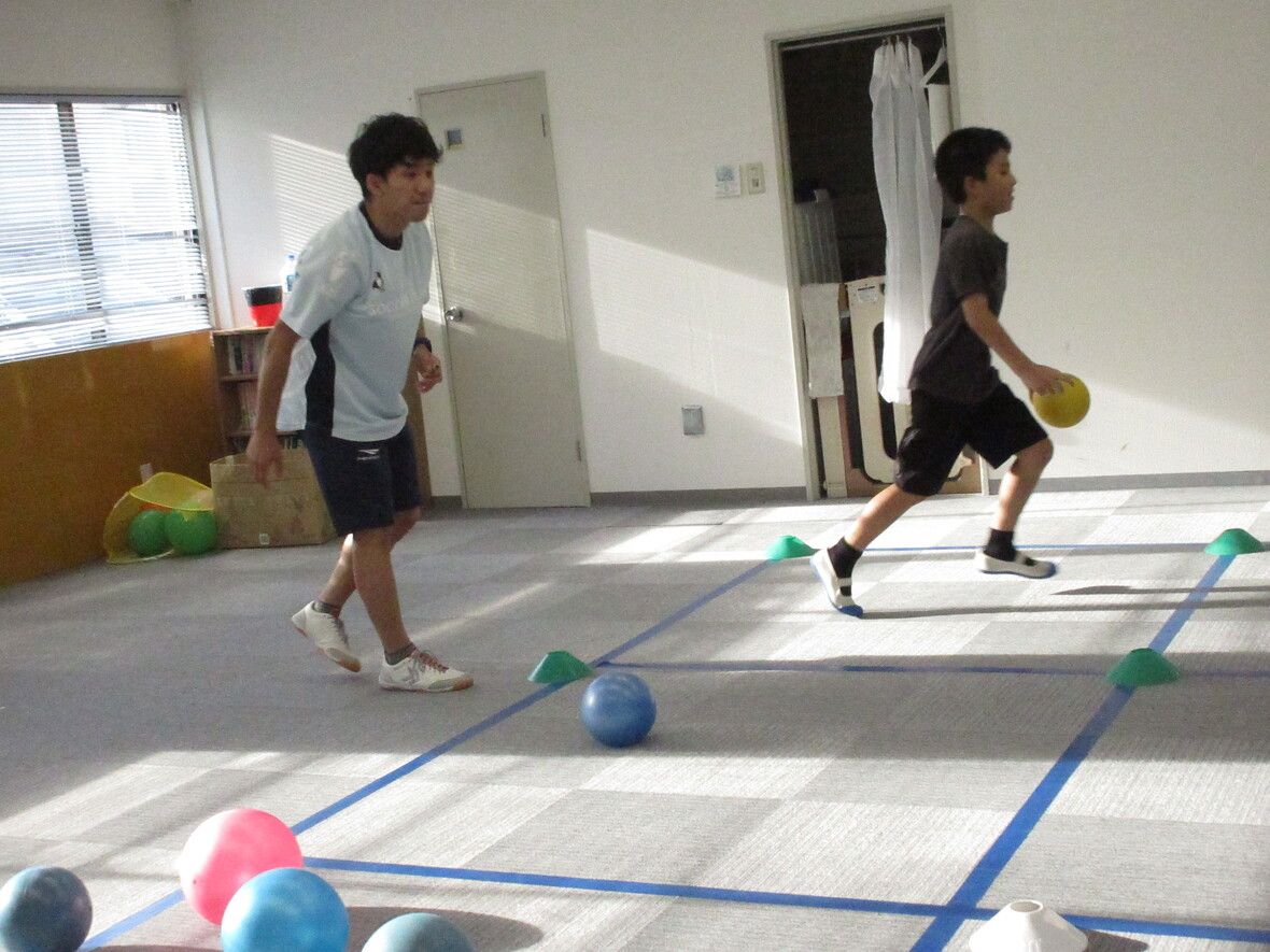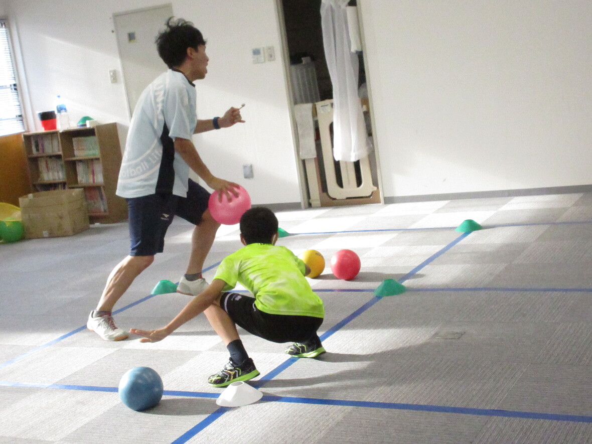 2023年07月24日(月) スタッフブログ コーディネーション(ボールうんどう) 今日のプログラムは「コーディネーション(ボールうんどう)」を行いました! 色んな大きさ、形のボールを使ってお友だちと楽しく運動をしている姿が見られました♬