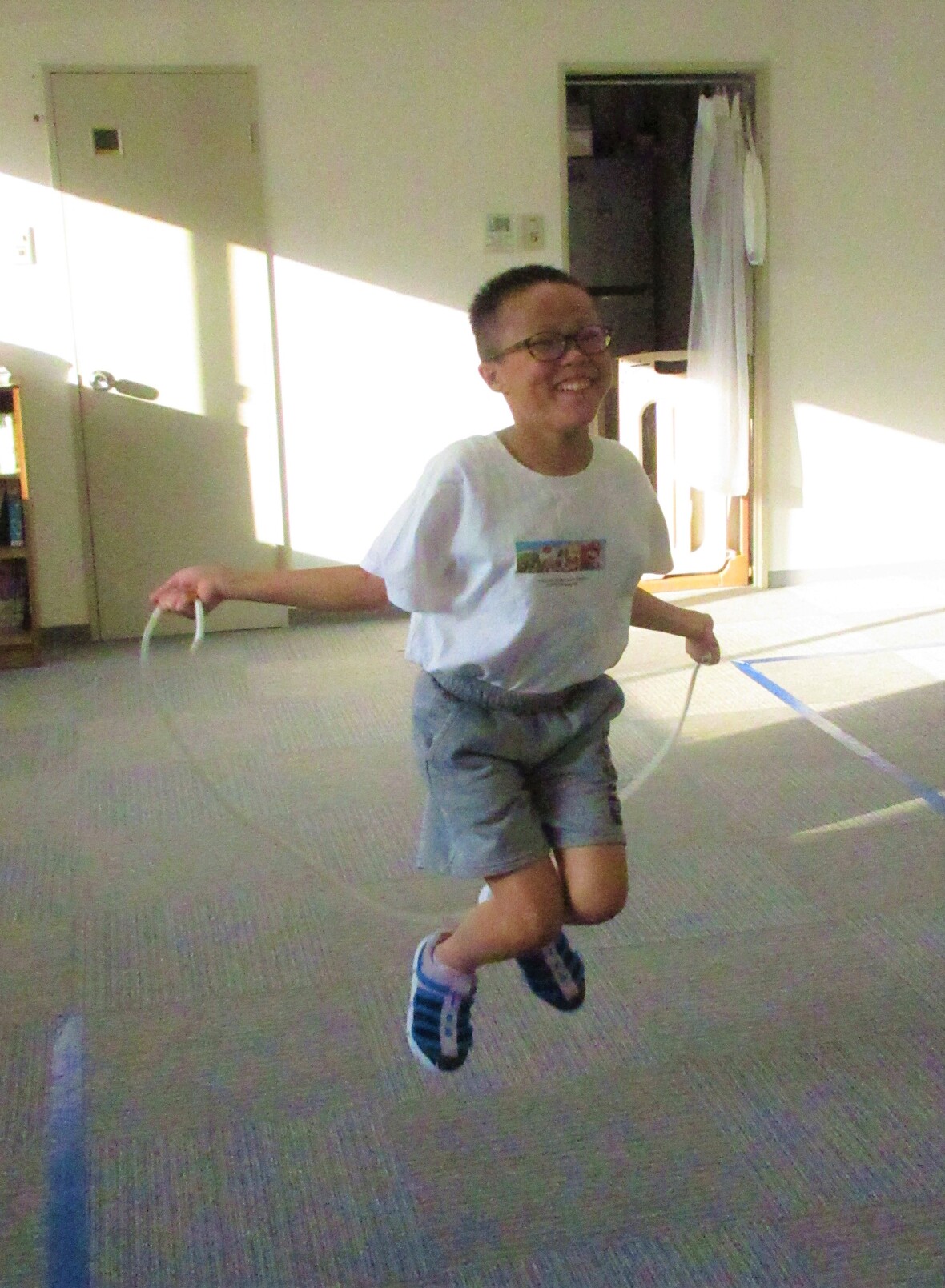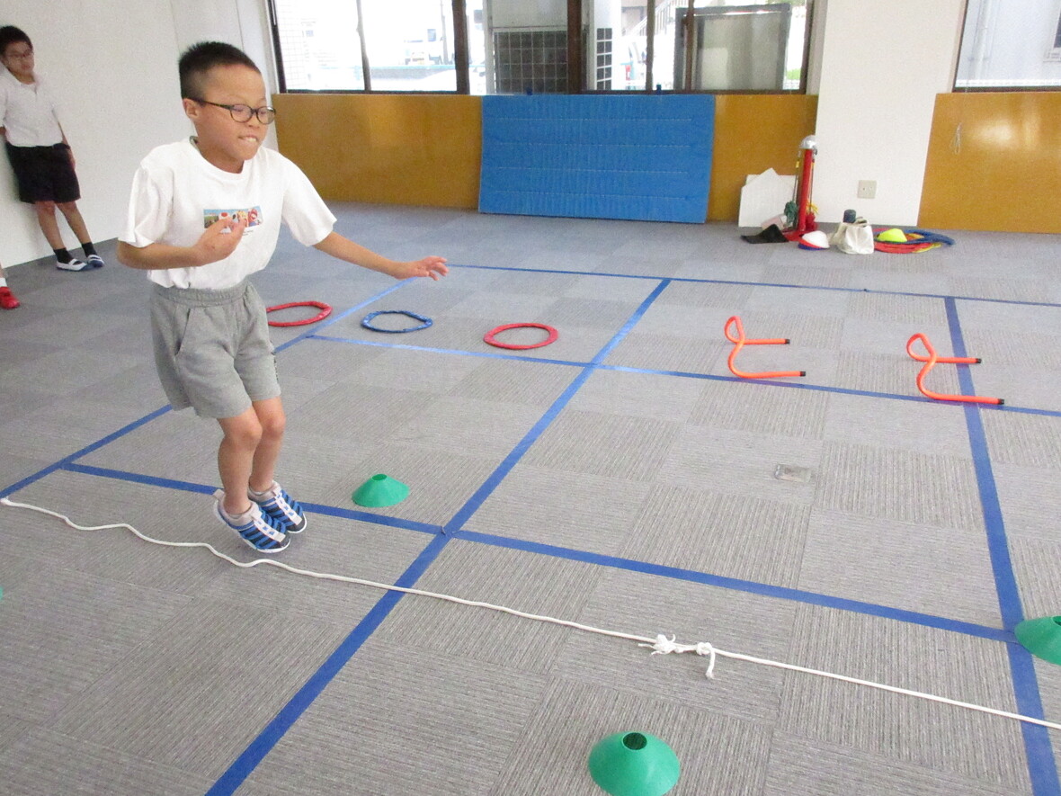 フィットネス(なわとび)をしました! なわとびで前跳びをしたり、長縄やジャンプも頑張っています!