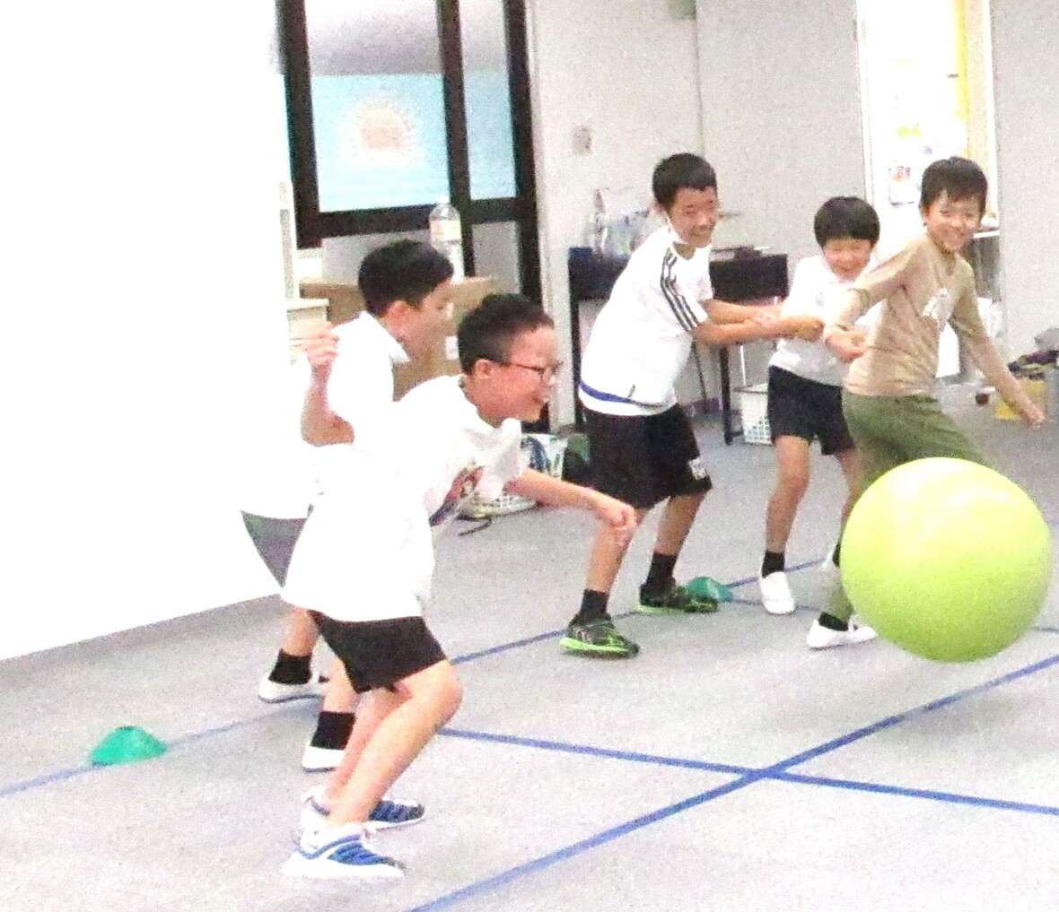 2023年10月17日(火) スタッフブログ コーディネーション(おにごっこ)をしました コーディネーション(おにごっこ)をしました! 2人組でお互いに意見を出し合いながら逃げたり追いかけたり、外野から転がってくるバランスボールを避けたりと元気に体を動かしています!