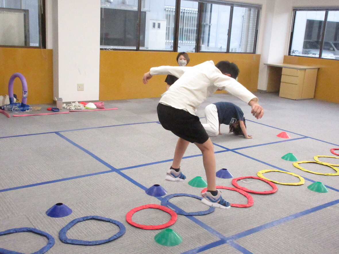 2023年11月02日(木) スタッフブログ フィットネスプログラムで”かけっこ”&”リレー” フィットネスとは「健康や体力の維持向上のため運動プログラム」。今日は”かけっこ”と”ジャンプ”を中心にプログラムを行いました。 ”かけっこ”の締めくくりのリレーでは、バトンのかわりにお皿のようなコーンを頭にのせて、かわいいですね。最後は力を出し切って・・・・ いいジャンプ! 鳥みたい え~っと!次は・・・ 帽子みたいでかわいいですね!落ちないように良い姿勢を保つ必要もあります スタート前にちょっとドキドキ 落ちそう~ 速いぞ~ すごいスピード感!! 疲れた~ 最後は全力出し切りました