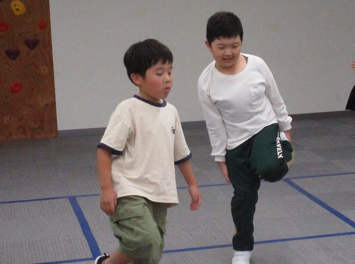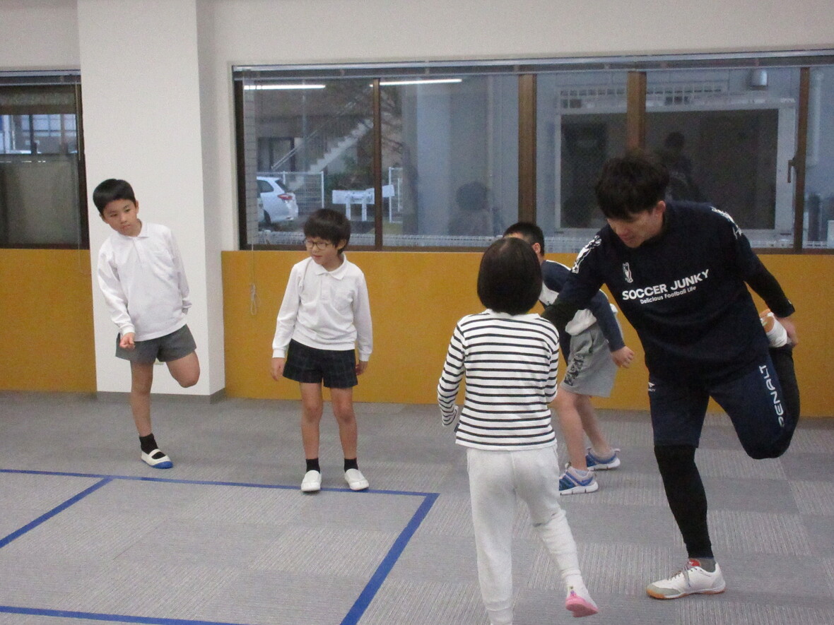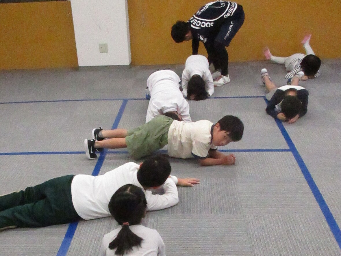 「体幹」とは、頭部と手足以外の体の中心部分のことで、運動をするときには、全身を安定させながら強い力を発揮するための支えとなって働きます。また日常生活においても、正しい姿勢やバランスを保ち、ひいては勉強などの「集中力」や「ねばり強さ」にも関係します。子どもたちの体幹トレーニングは、遊びの中で楽しく取り組むことが最も重要です。運動やスポーツを楽しみながら「立つ」「座る」「走る」「跳ぶ」「投げる」「蹴る」など多様な動きを繰り返すうちに「いつのまにか」「自然に」体幹が鍛えられることが理想的ですね。タカ先生はいつもいろいろなトレーニング遊びを教えてくれます。今日も楽しく取り組みました!!
