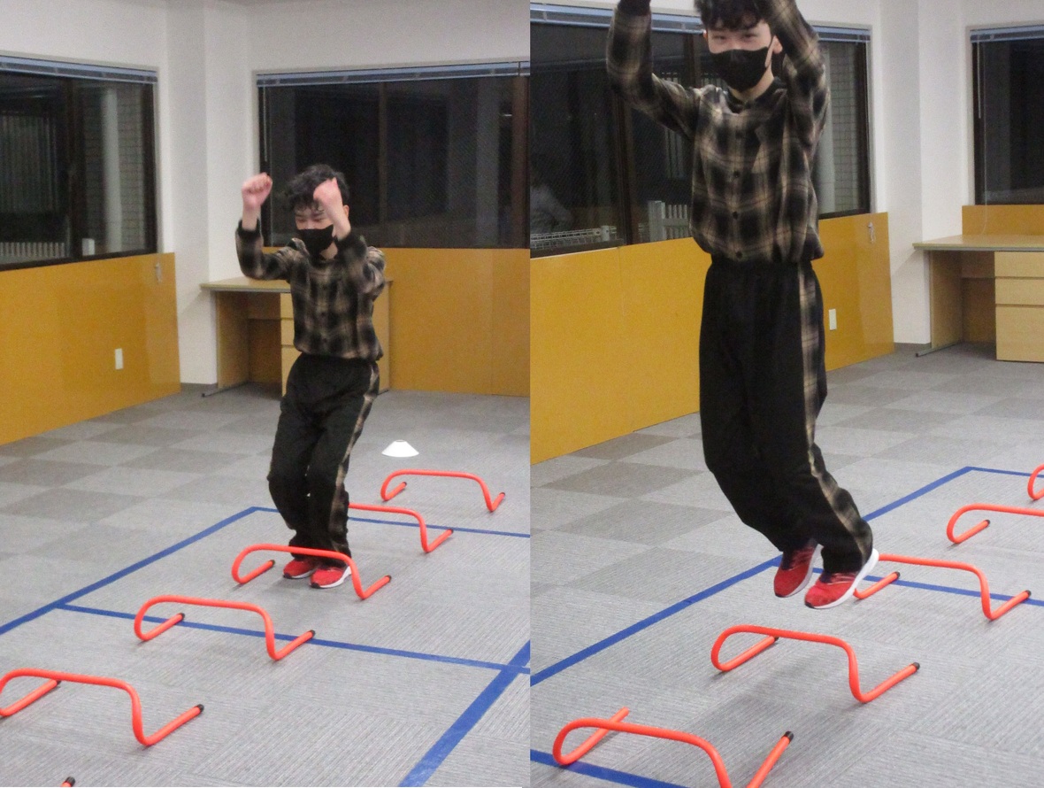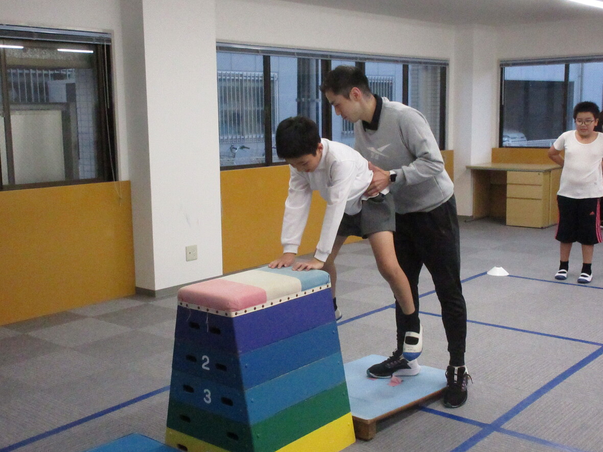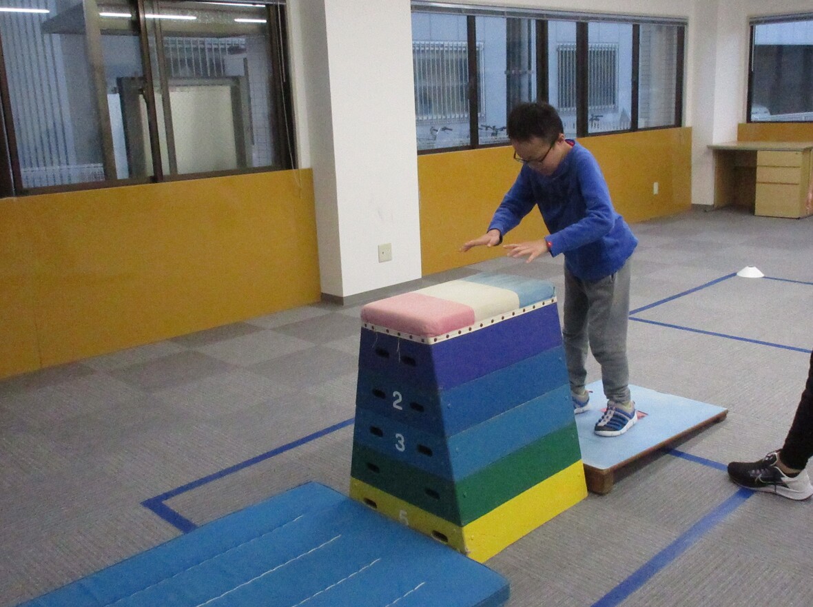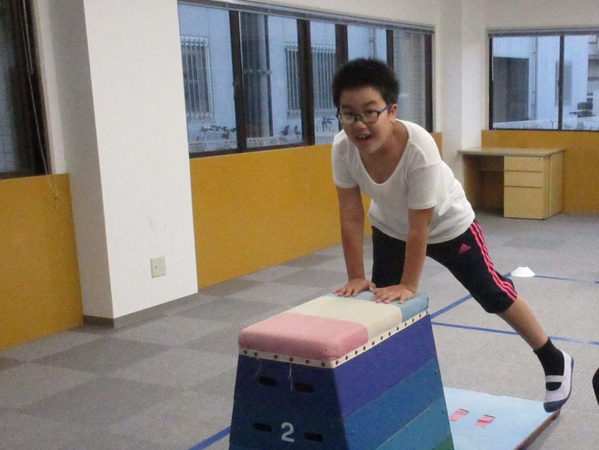 2023年11月08日(水) スタッフブログ とび箱とミニハードルにチャレンジしました!!! フジイ先生との体操プログラム!今日はとび箱とミニハードルを行いました。とび箱は踏みきり板を強く蹴ってジャンプするだけでなく、とび箱のヘッド(上部のクッションのことで布が張ってあるところ)を両手でしっかり支えることで、高く、遠くに跳ぶ力が生まれます。さらに体幹をしっかり使うことで空中姿勢も安定します。 ミニハードルは体力の要素のうち、瞬発力や敏捷性のトレーニングに最適!みんな見事なジャンプやハードリングですね!!! 踏みきり板を蹴ってから両手で支える練習です しっかり両手で支えてますね できるかな? 両手を挙げてハードリング 軽やかなジャンプです 上手にハードルをこえてます