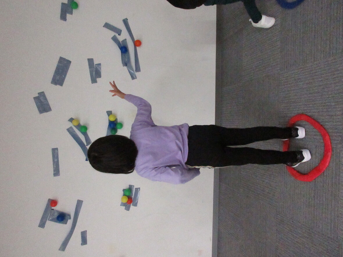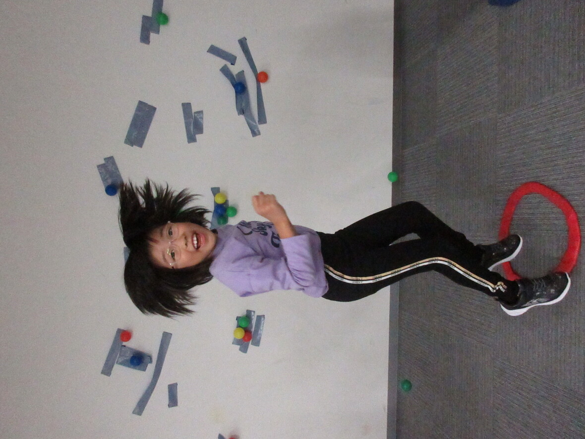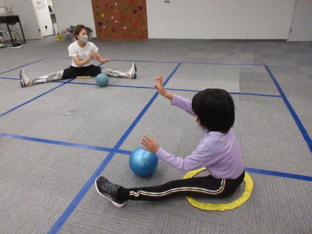 2023年11月09日(木) スタッフブログ フィットネスプログラムでボール運動を楽しみました!! ナツミ先生とのフィットネスプログラム!!いつも楽しい運動を教えてくれます。今日はボール運動。壁に貼り付けた両面テープを的にしてにボールを投げると・・・ペタッとくっついて「おもしろ~い」! ウォーミングアップもしっかり行いました ジムボールを使ってストレッチング よーく狙って…… やった~!
