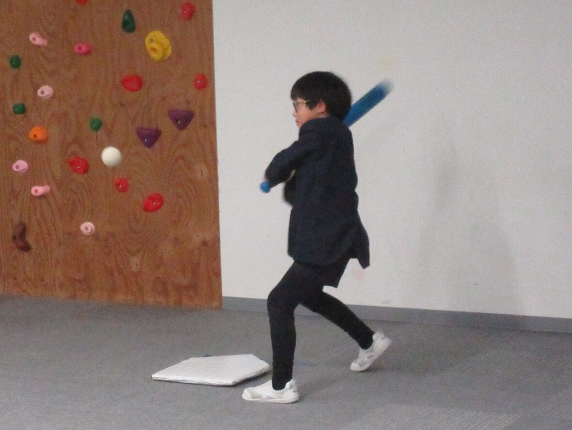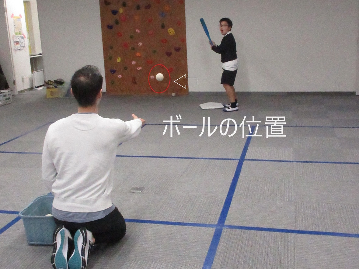 2023年11月15日(水) スタッフブログ フジイ先生と野球を楽しみました。 野球のバッティングの基本は、しっかりボールを見ることですが、実際に打撃をする位置(自分のところ)に来るまで、ずっとボールを見てしまうと、当然のように振り遅れてしまいます。そのため、ある程度近づくまでボールを見たら、それ以降はボールの軌道を予測して打撃を行います。これは「フィードフォワード」という神経と筋肉の協応した働きで、スポーツでは非常に重要な能力です。みんなしっかり「フィードフォワード」ができていますよ!ナイスヒッティング! バットを振るスピードにも関係しますが、これくらいから先は予測で打撃しています。