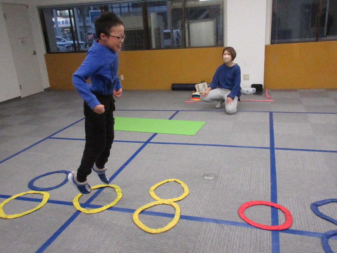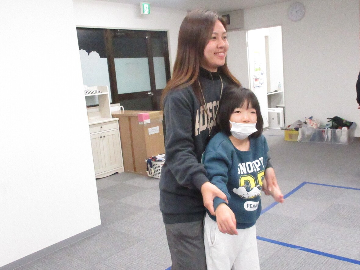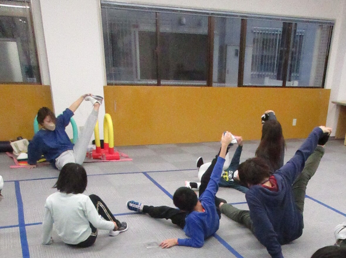2023年11月16日(木) スタッフブログ ナツミ先生とダンス♬(フィットネス) 今日はナツミ先生とフィットネスプログラムを行う日!!準備運動のストレッチングは指導員の先生も一緒に行いました。トンネルくぐり、ジャンプなどで体をほぐしてから、しっかりダンスにチャレンジしました。!! 開脚してしっかりストレッチング ウォーミングアップとしていろいろな運動もがんばりました ジャンプもバッチリ さあダンス!! がんばってます 先生が協力してくれました
