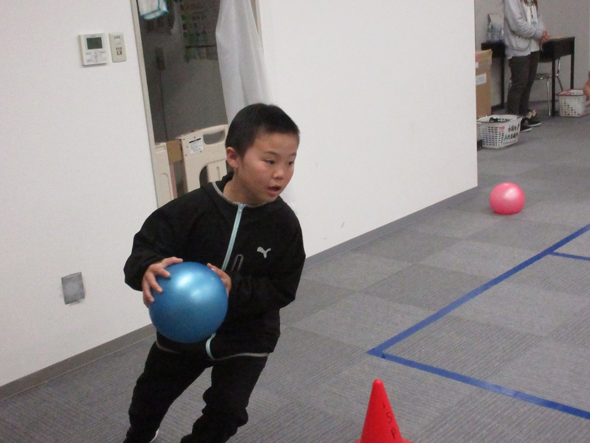 2023年12月04日(月) スタッフブログ バスケットボールでビジョントレーニング 毎週月曜日は「ビジョントレーニング」です。今日はバスケットボールに挑戦。ドリブルでは手元ばかり見ていると、周囲の状況が分からなくなるので、広い視野が必要です。またフェイントは視線とフェイクの動作がポイントになりますね! ウォーミングアップもしっかり!! ドリブルをしながらボールを次の人につなぎます パスコースを相手に読まれないように・・・ ナイスパス!
