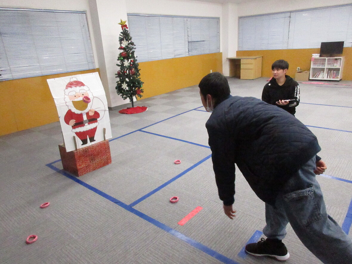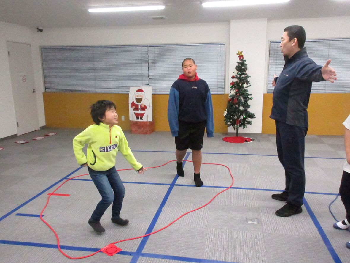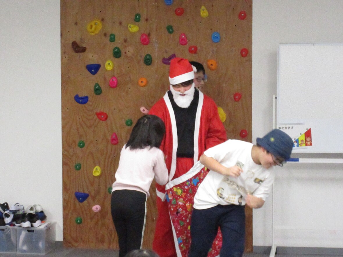 2023年12月22日(金) スタッフブログ サンタがスポーツ園にやってきた☆クリスマスお楽しみ会!! 今日はクリスマスのお楽しみ会!!いよいよ近づいたクリスマスを前に、みんなでいろいろなゲームを楽しみました。帰りの会にはサンタクロースも登場!みんな素敵なクリスマスを迎えてくださいね・・・ サンタクロースの口にドーナッツを 〇✕クイズ「さて正解は?」 時間いっぱい!これからは移動できません eスポーツ(ボウリング)で得点アップ!! サンタさんが登場! ちょっと若いサンタさん? 記念撮影!
