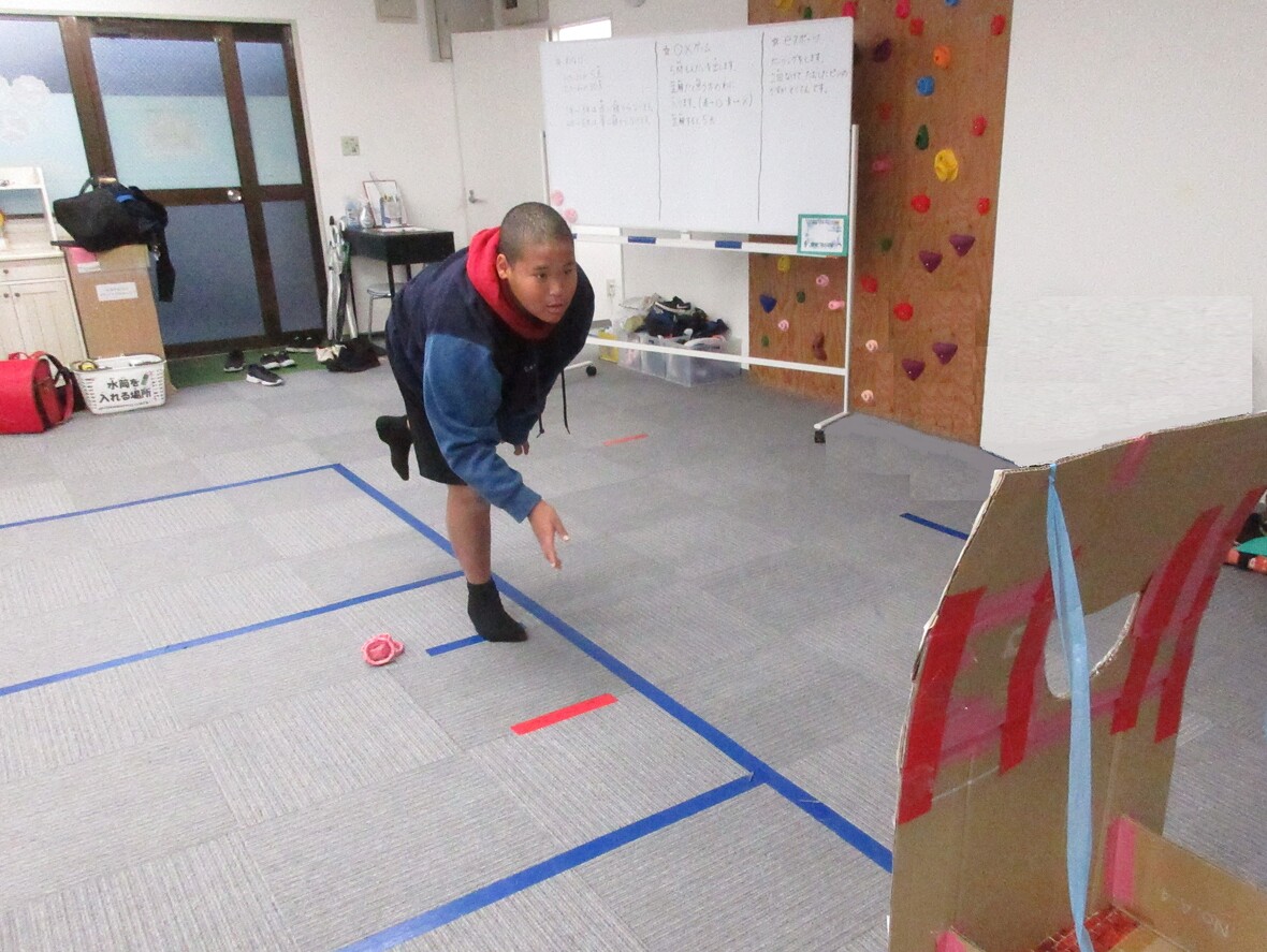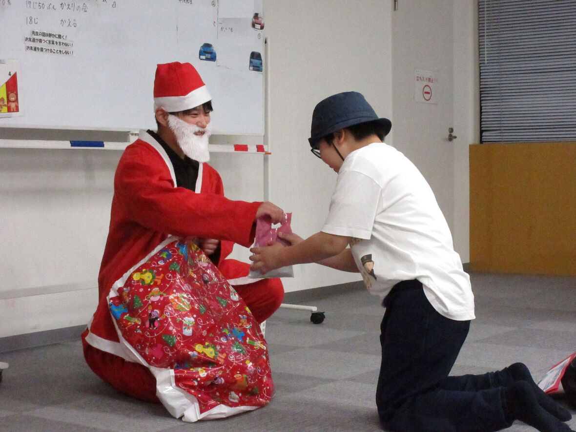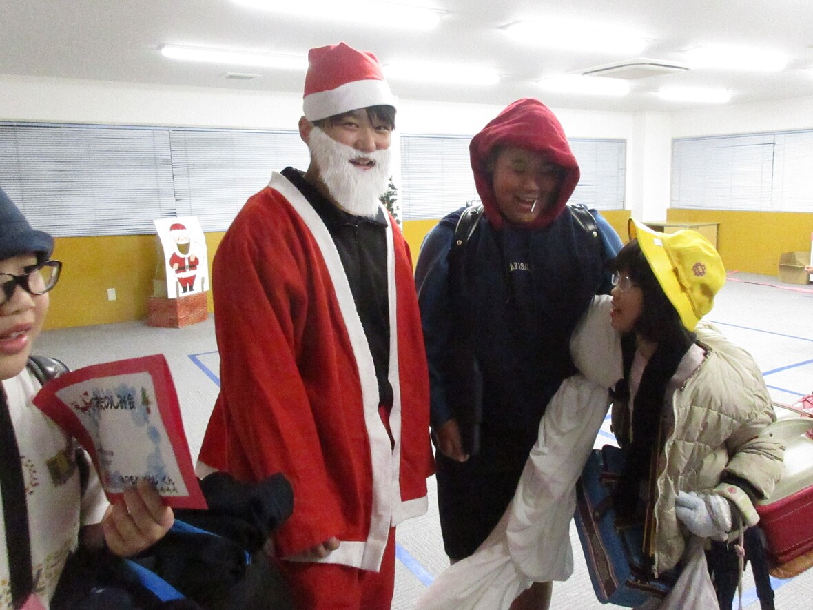 2023年12月22日(金) スタッフブログ サンタがスポーツ園にやってきた☆クリスマスお楽しみ会!! 今日はクリスマスのお楽しみ会!!いよいよ近づいたクリスマスを前に、みんなでいろいろなゲームを楽しみました。帰りの会にはサンタクロースも登場!みんな素敵なクリスマスを迎えてくださいね・・・ サンタクロースの口にドーナッツを 〇✕クイズ「さて正解は?」 時間いっぱい!これからは移動できません eスポーツ(ボウリング)で得点アップ!! サンタさんが登場! ちょっと若いサンタさん? 記念撮影!