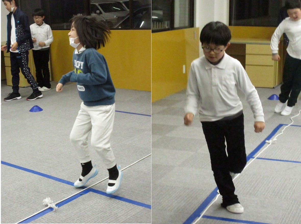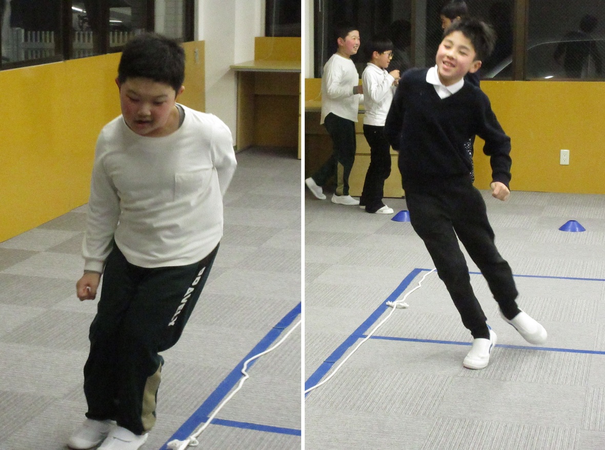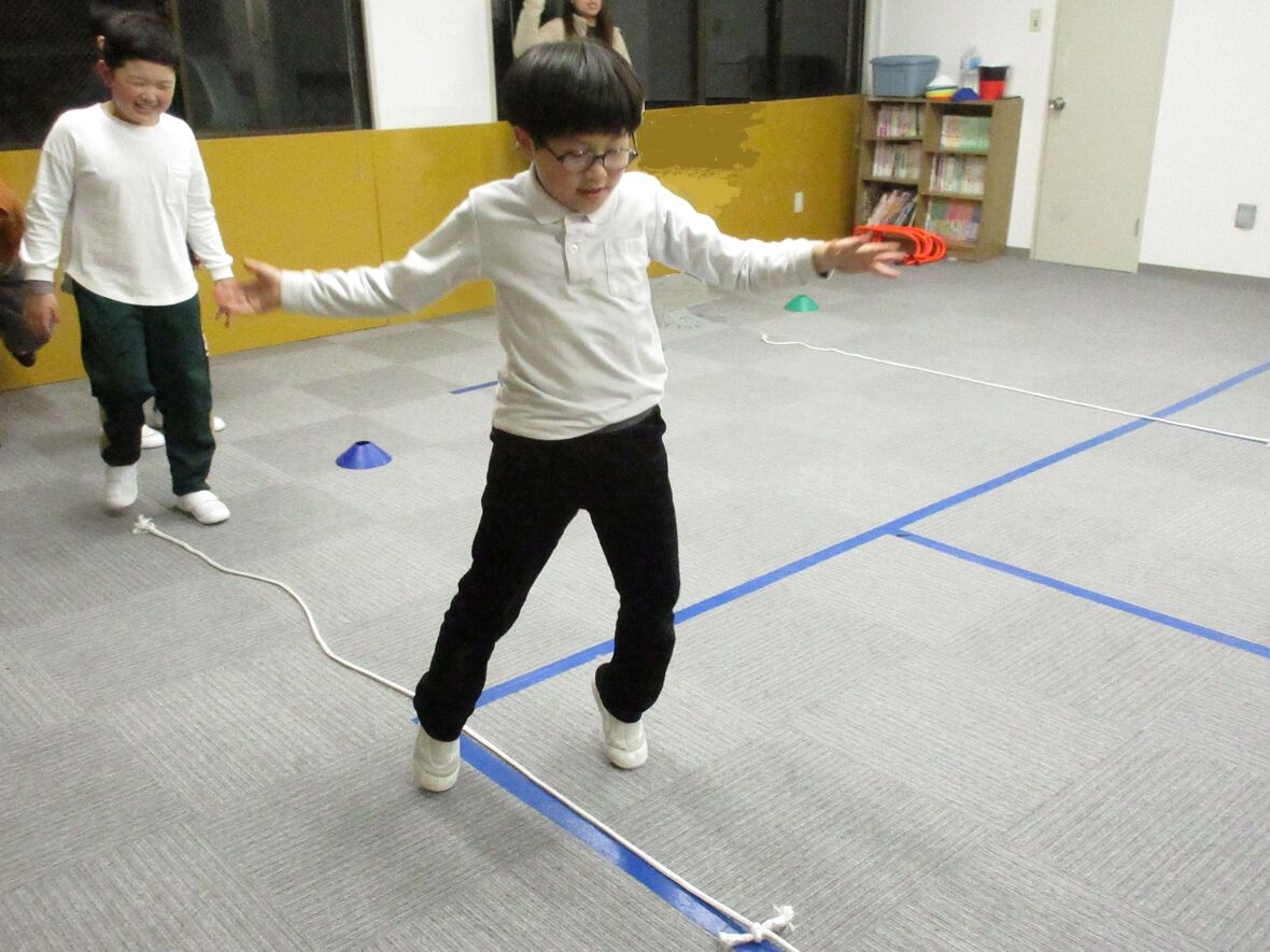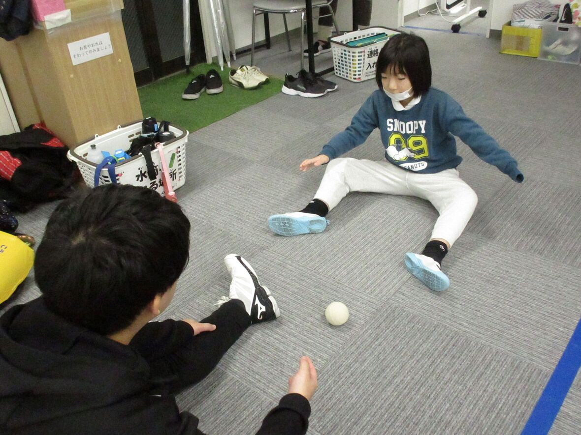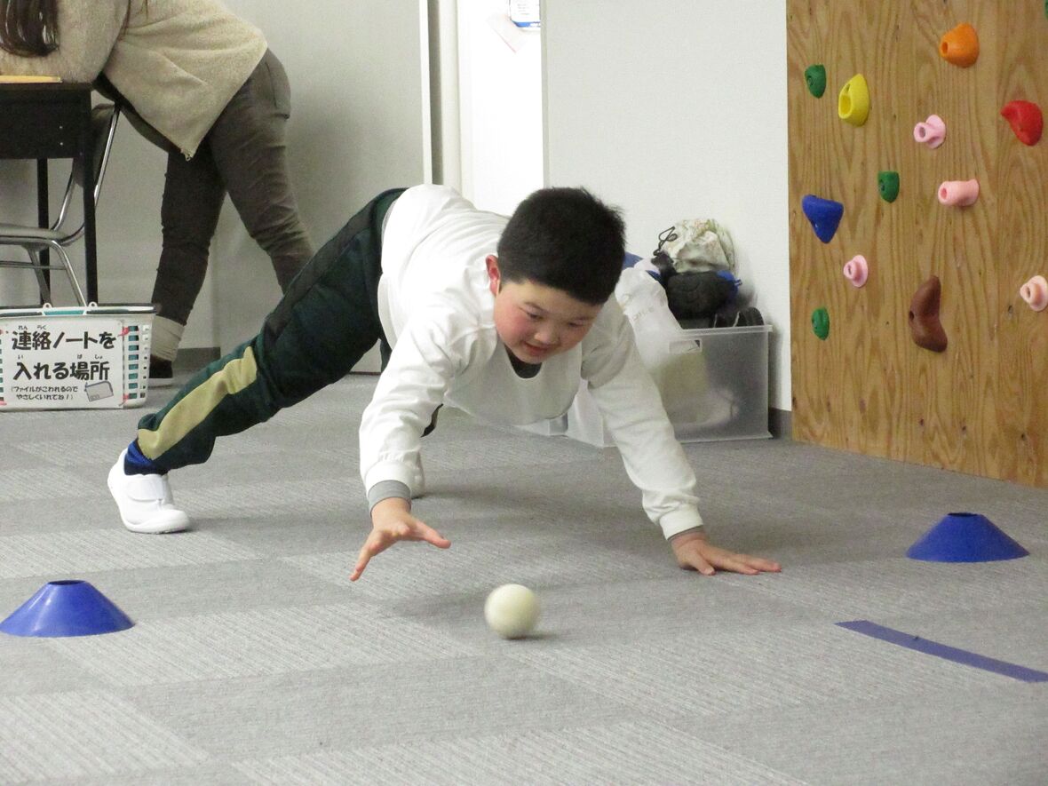 今日はタカ先生と体幹とジャンプのトレーニングを行いました。四つ這いは、体幹をトレーニングするうえで重要な姿勢です。その姿勢から発展して、転がってきたボールを手に取ることによって、両足と片手でバランスを保つために体幹がさらに使用されます。体幹トレーニングの後は左右の移動ジャンプもチャレンジしました。