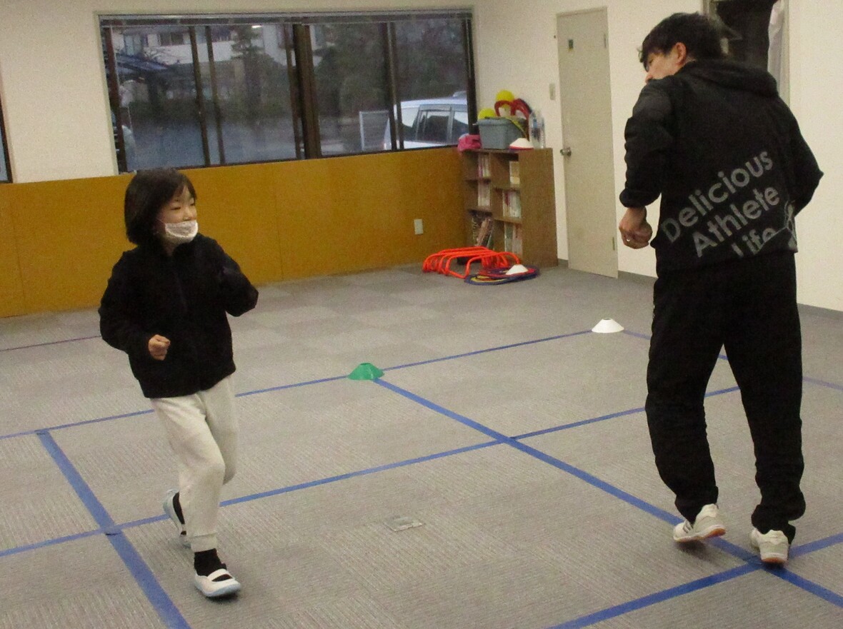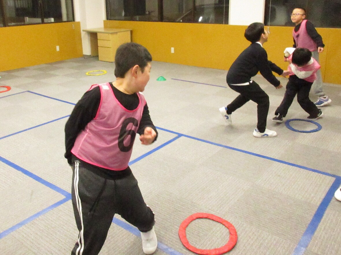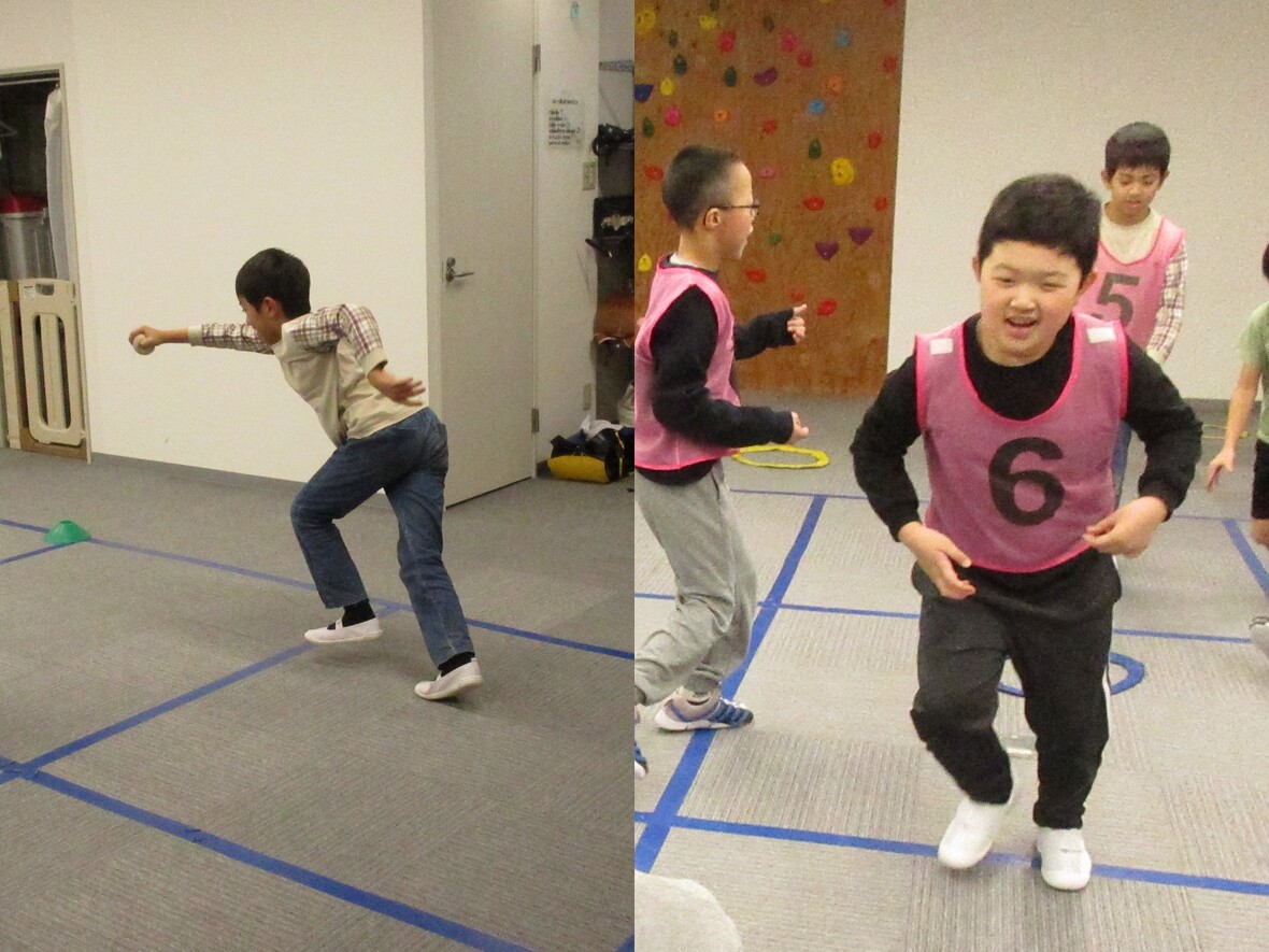 2024年01月16日(火) スタッフブログ タカ先生とおにごっこ(コーディネーション) 鬼ごっこは誰でもわかりやすい簡単な遊びであり、全身の筋肉をしっかり使うこともできます。それをコーディネーションプログラムに組み入れることで、逃げる時の反応スピードや、身体を動かしてよける動作に必要なバランス感覚を養っていきます。子どもたちもなじみの深い遊びであることに加え、ボールを持ちながら逃げる等といった工夫を加えることで新鮮な気持ちで楽しみ、たくさん汗を流して元気に取り組んでいます! 逃げる先生を頑張って追いかけます! ボールを持ったら一直線にコーン目指してダッシュ! 忍者になって輪っかの中のお宝(ボール)をゲット!