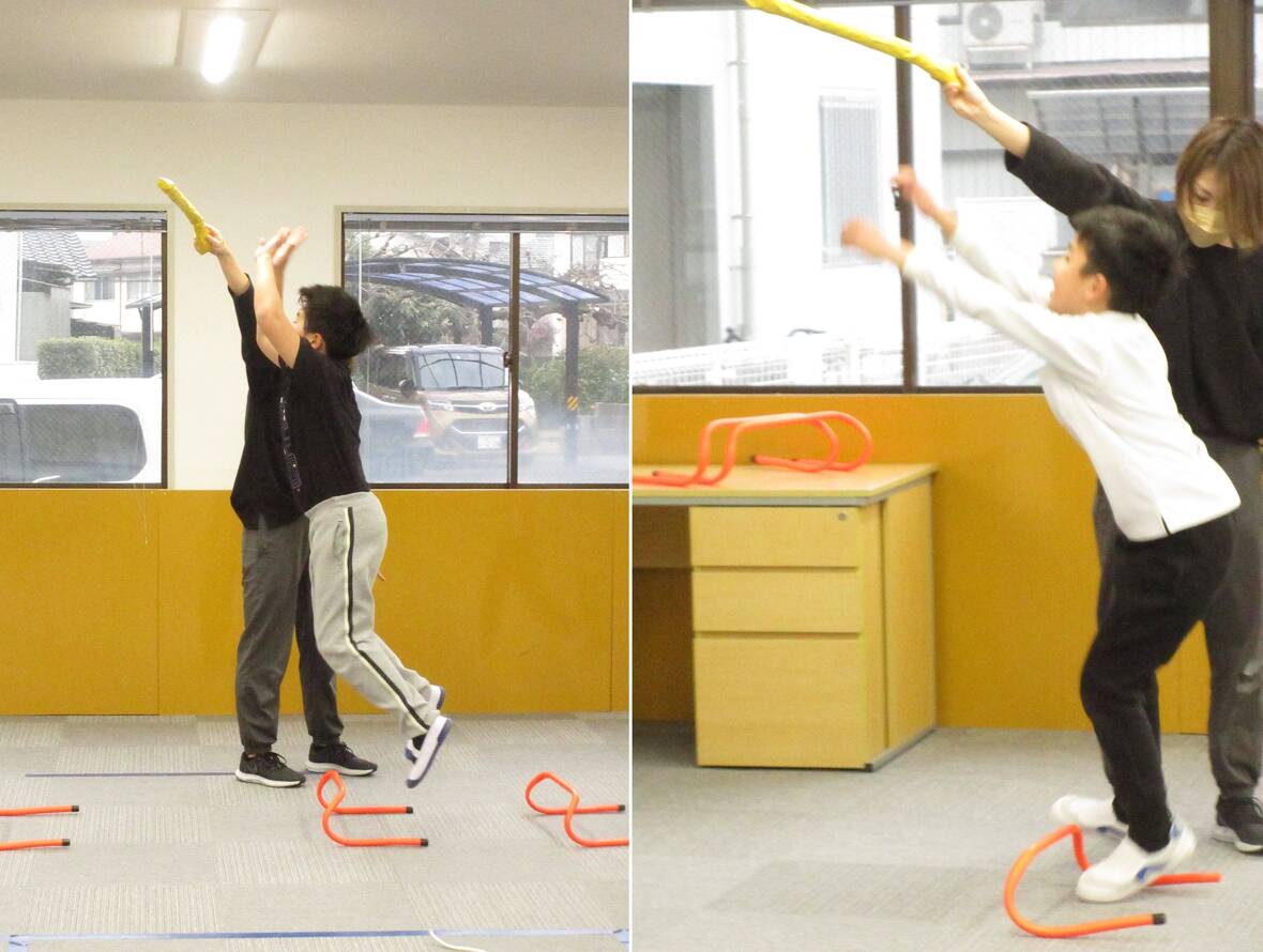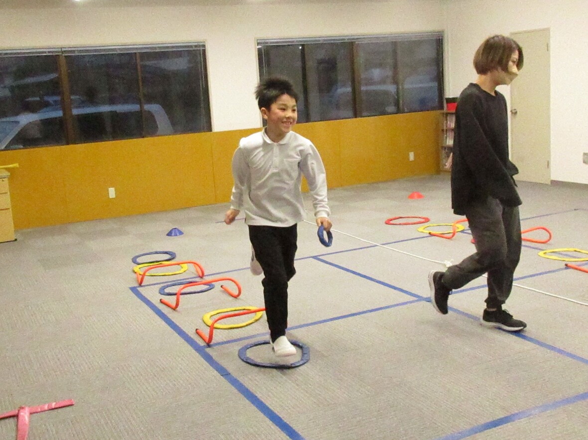 2024年01月18日(木) スタッフブログ ”かけっこ”と”リレー”でしっかり走りました☆彡 かけっこ・リレーといっても様々な方法があります。ハードルを飛び越えたり輪っかをくぐったりコーンをジグザグに通って見たり……たくさんの動きをしながら一つのバトンを仲間につなぎます。チームワークや瞬発力のトレーニングに最適です! みんなで仲良くストレッチ! ハードルをできるだけ高くジャンプ! 輪っかをよく見て跳びます 様々な障害物を乗り越えて次の人にバトンをつなげ! 皆とても盛り上がっています!