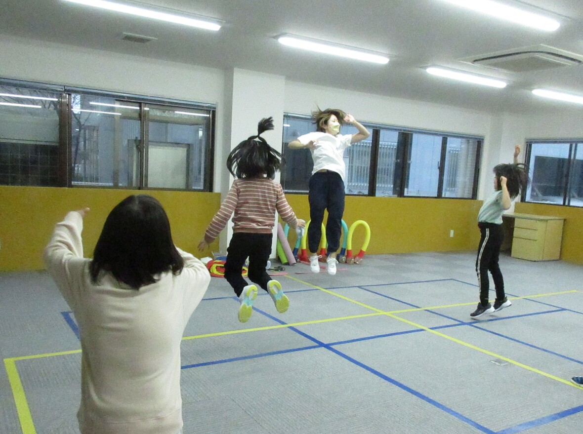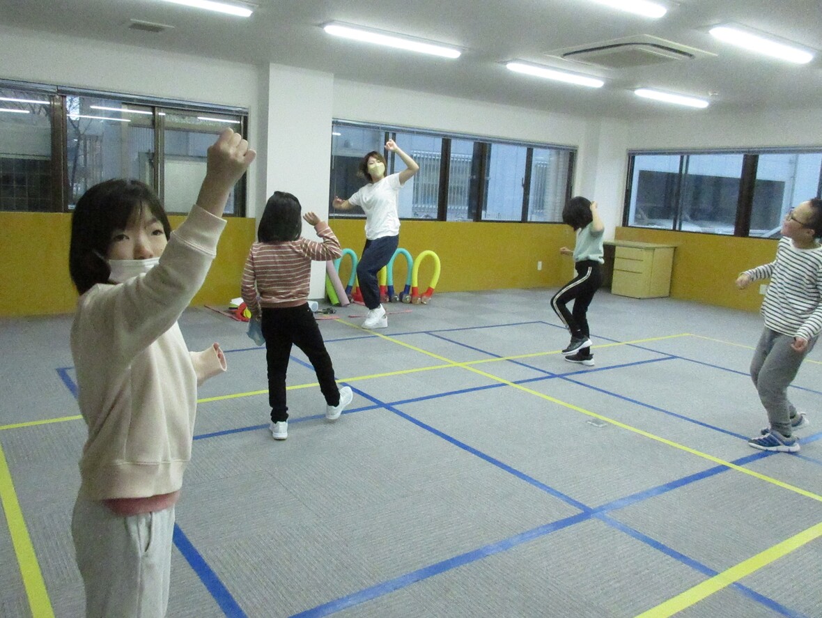 2024年02月15日(木) スタッフブログ ダンスで盛り上がりました♬ 今日はナツミ先生とダンスの日です。ダンスは子どもたちの感情表現を豊かにしてくれます。楽しい音楽に合わせて、思いきり体を動かすのは気持ちいいですね♫♪ 思いきりジャンプ イエー! ダメダメ?そんなことはありません。振付です。