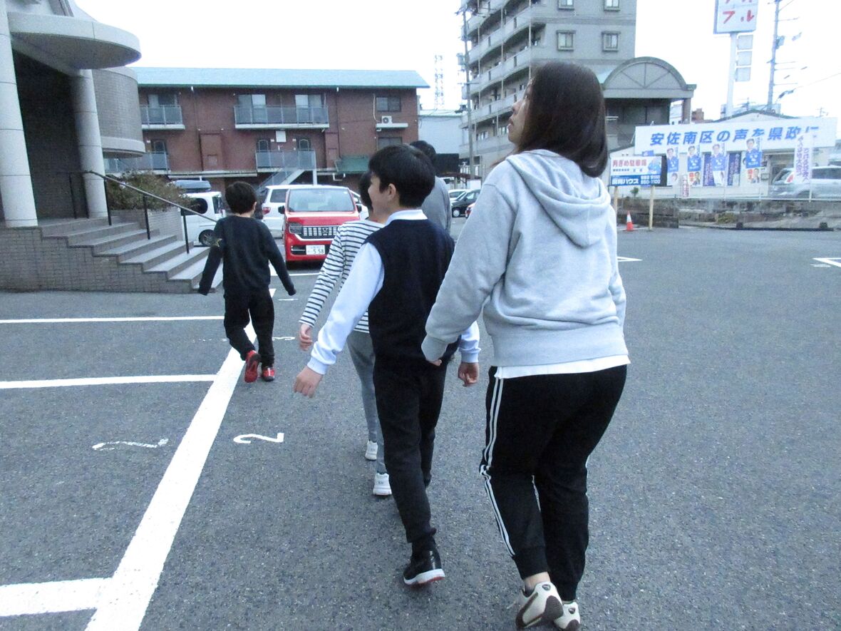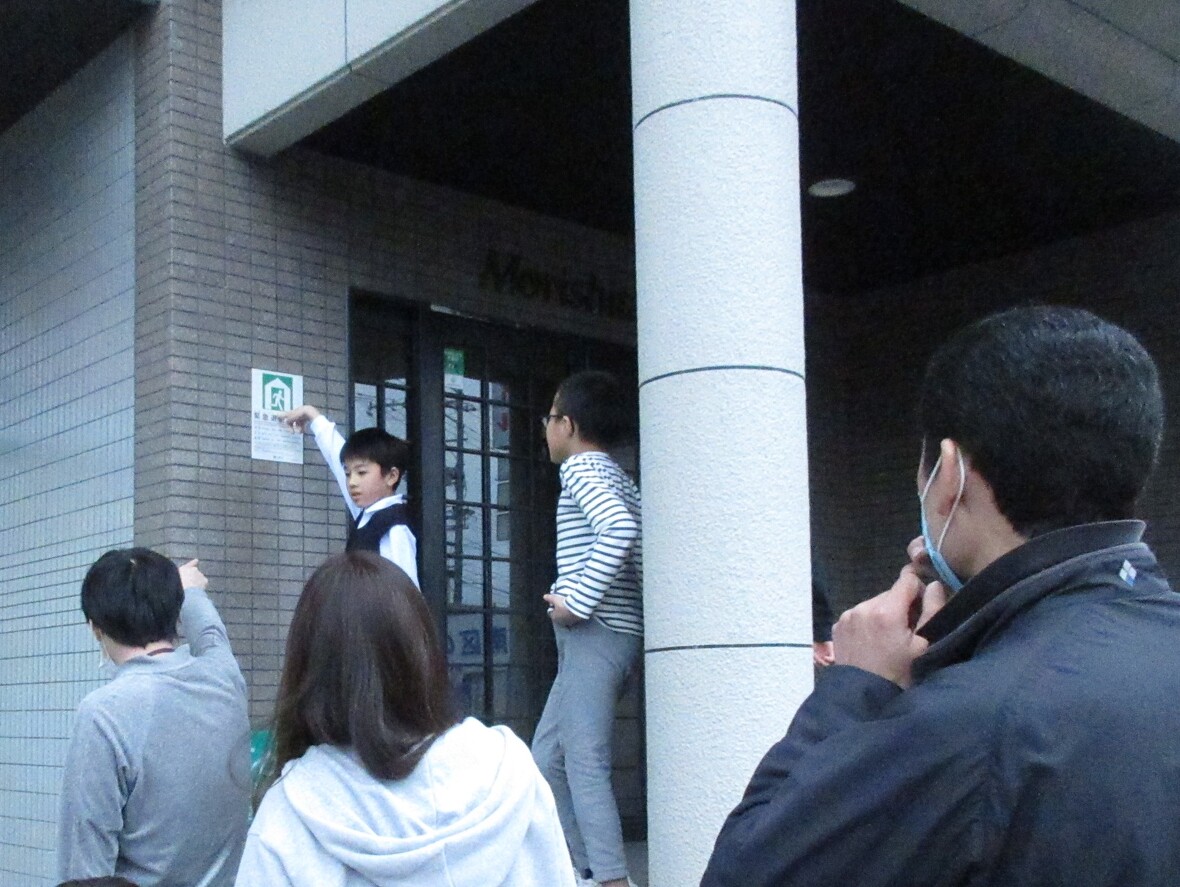 こどもスポーツ園は、広島市洪水ハザードマップによる洪水浸水想定区域に所在しているため、避難確保計画の作成と避難訓練の実施が義務付けられた施設です。今日は運動プログラムの前に、子どもたちと避難訓練を行いました。ゆうき先生から避難の決まり事である「お(おさない)」「は(はしらない)」「し(しゃべらない)」「も(もどらない)」について説明を受けた後に、実際に最寄りの緊急退避施設まで行ってみました。施設は道路をはさんだ反対側にありますが、八木用水も横切っており、いろいろな状況を想定し、注意点を確認しながら避難しました。自分の、そして友だちの命を守るため、みんな真剣に取り組んでくれました。
