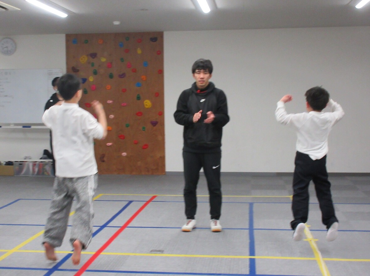 2024年03月05日(火) スタッフブログ タカ先生とコーディネーション!!(体幹とジャンプ) 二人で向かい合って四つ這いになります。 今日はタカ先生とコーディネーションプログラムを行いました。最初は体幹を鍛える運動!四つ這いになってボールをパスします(これがすごく大変!!)。続いてコンビネーションジャンプ!体をひねったり、横に跳んだりして この姿勢でボールを転がしてパス(大変) とてもいいジャンプ! 背中がしっかりと弓なりのアーチになっています