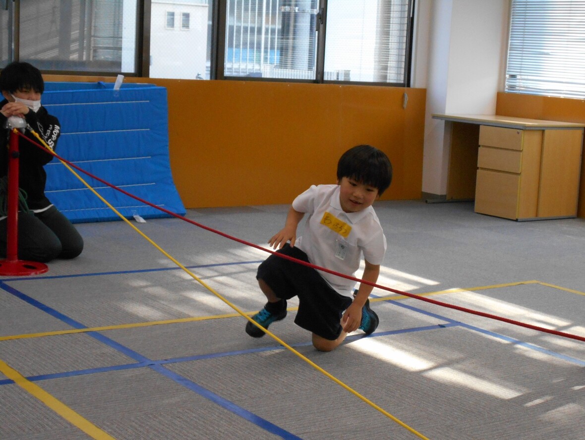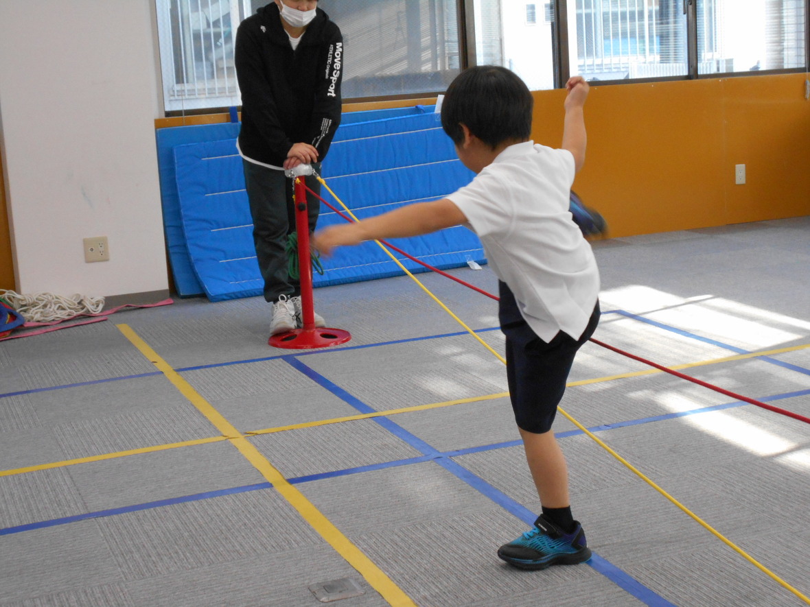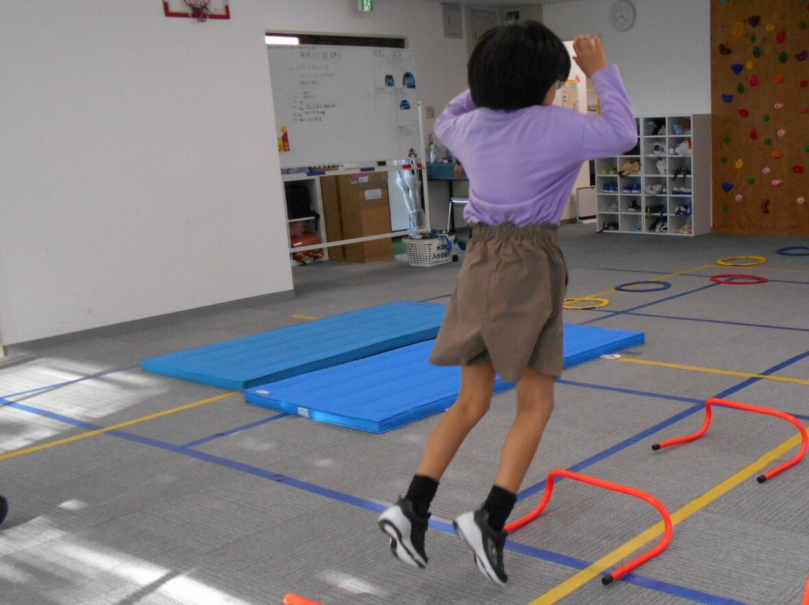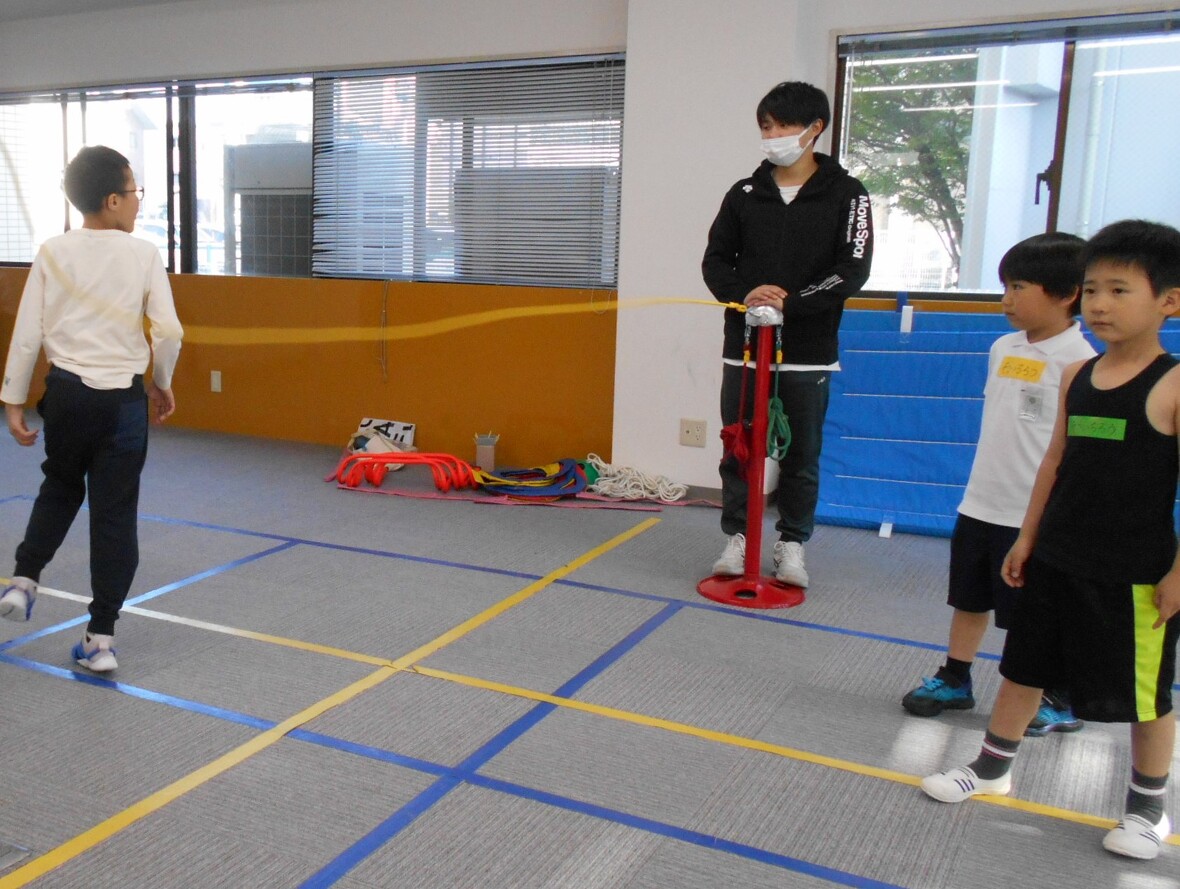 2024年04月25日(木) スタッフブログ ナツミ先生となわとび なわとびで重要になるのはジャンプ力ですが、それに加えて、視覚によって得られた情報を処理して体を動かす協応動作が不可欠です。みんなで、「なわ」の回転にジャンプのタイミングを合わせるために、よく見て、どのタイミングでジャンプすればよいかをしっかり考えながら練習しました。 まずはジャンプ練習 みんな、しっかり「なわ」の動きを見ていますね 上下に動く2本の「なわ」をよく見て・・・ 「あらよっと」上手に跳ぶことができました