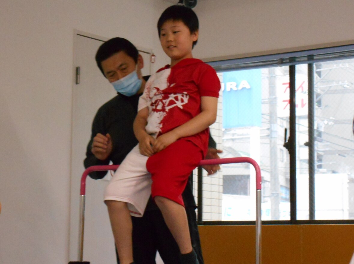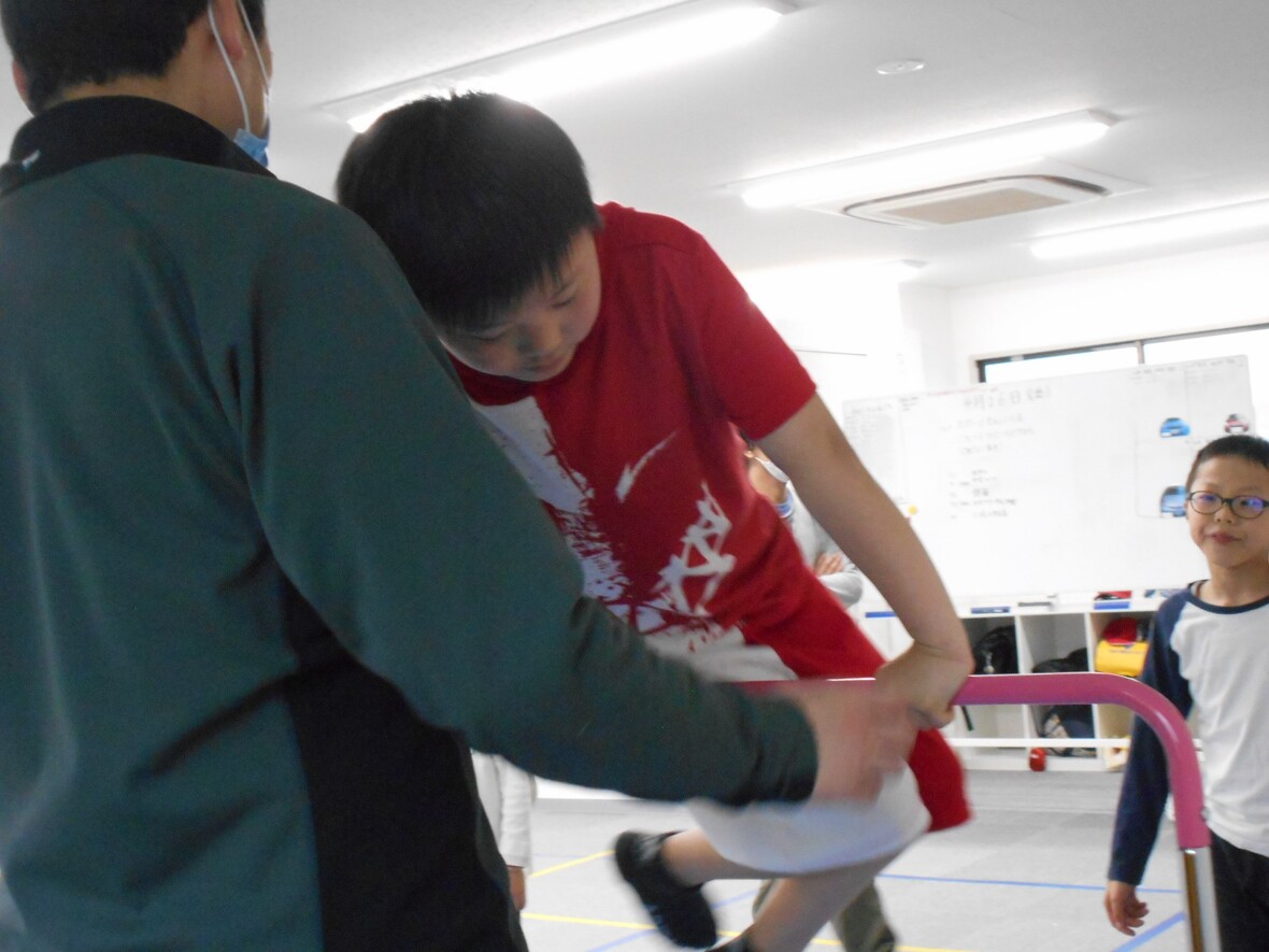 2024年04月26日(金) スタッフブログ 鉄棒を使ってバランスのトレーニングをしました 金曜日は体操の日!!鉄棒を使った運動を行いました。鉄棒といえば、前回りや逆上がりをイメージしますが、今日は少し変わったことにチャレンジ!!鉄棒に跳びついた「つばめ」のポーズから、鉄棒の上に座ってバランスをとる練習。とても難しいけれど、しっかり頑張りました 最初はラジオ体操でウォーミングアップ 片足で立つバランストレーニング!最初はおっかなびっくりも、しっかりできるようになりました いよいよ鉄棒でバランス!ちょっと油断すると、前に落ちそうに 手を放して大丈夫? 前向きのつばめの姿勢から おしりを少しずつ鉄棒にのせて 上手にバランスとれました