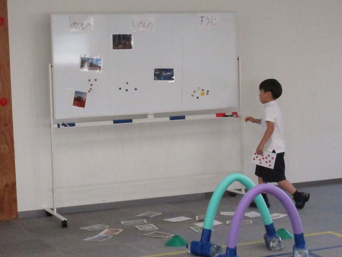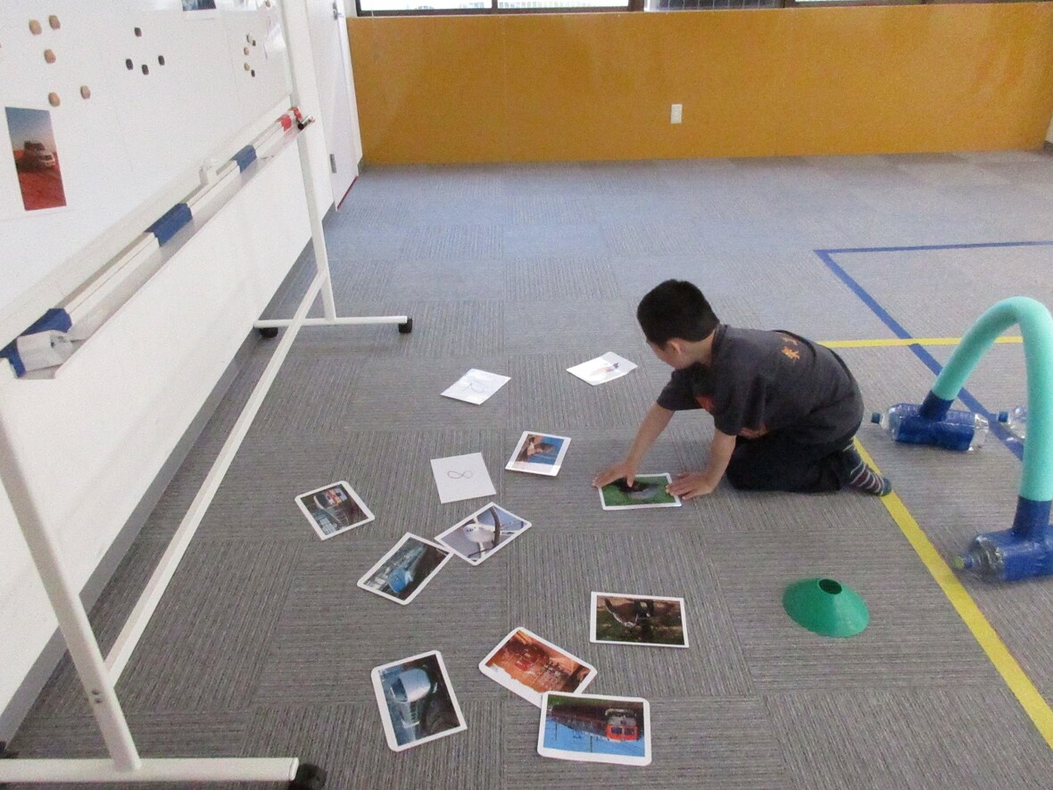 2024年05月13日(月) スタッフブログ かける先生とカード学習プログラム 毎週月曜日は、かける先生とカード学習の日。いろいろな概念を理解するために、現在カードの種類がどんどん増加中です。頭と体を使って、しっかりがんばろう!! カードと問題のところまではサーキット運動 ジャンプもありますよ 答えのカードを探して ホワイトボードに答えを貼ります! できたよ~