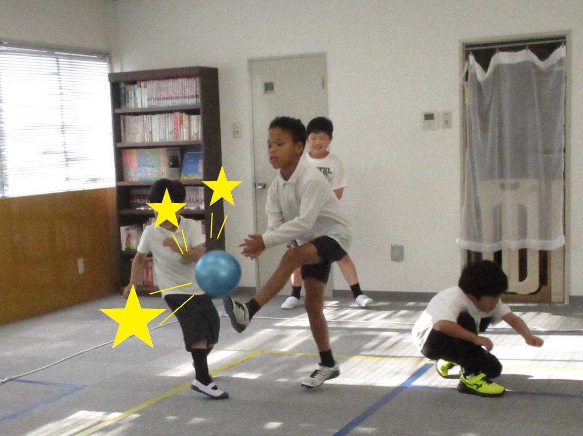 2024年06月04日(火) スタッフブログ ドッジボールを楽しみました!! センターラインをはさんで投げ合うだけのいつものゲームに、外野と内野で役割を分担した本来のルールを加えてみました。味方のお友だちへのパスや上級生が下級生を助ける場面もあって、とても良い活動になりました。 相手のボールをよけるためには、俊敏な動きに加えて広い視野も必要です。 低学年のお友だちに声をかけて・・・ しっかり守りました