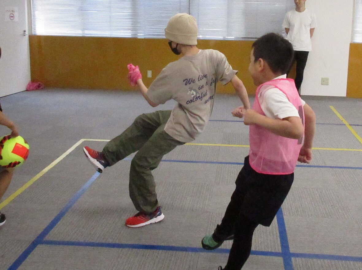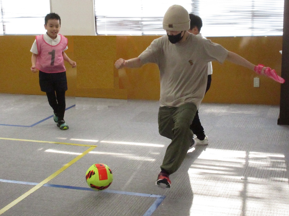 2024年06月05日(水) スタッフブログ 今日はサッカーにチャレンジ!! サッカーは世界中で愛されているスポーツ!もちろんスポーツ園の子どもたちも大好きです。キーパー以外はほとんど手を使うことができない(ラインアウトのスローインなどで手を使いますね)ので、足で体のバランスをとりながらボールをコントロールする必要があり、そのために体幹をしっかり使うことができます。また目の前の相手だけでなく、パスコースや空いたスペースを把握するために、広い視野も不可欠。子どもたちの成長に大きく役立つスポーツのひとつですね。 ドリブルで持ち込んで・・・ シュート! ボールを上手にコントロール 中学生の後ろから追いかけて・・・ パスを受けてドリブル