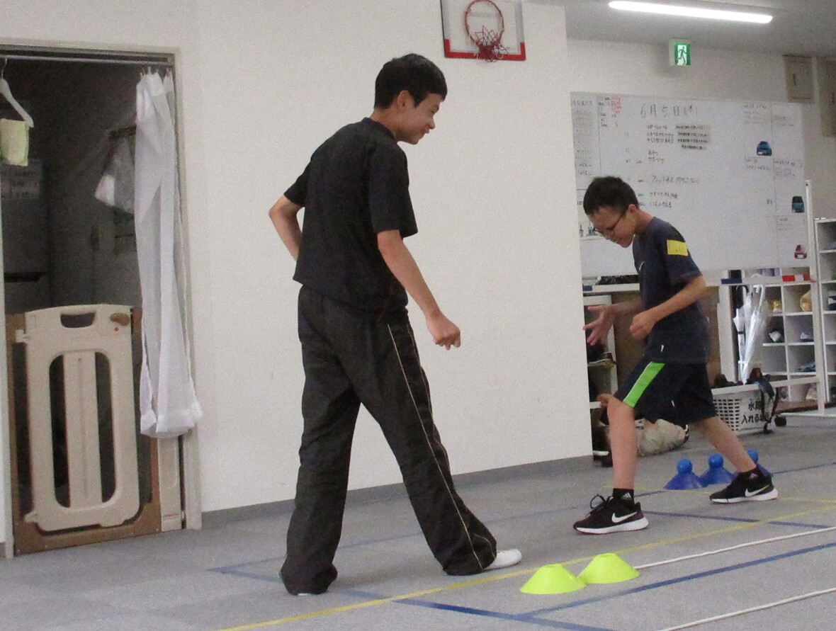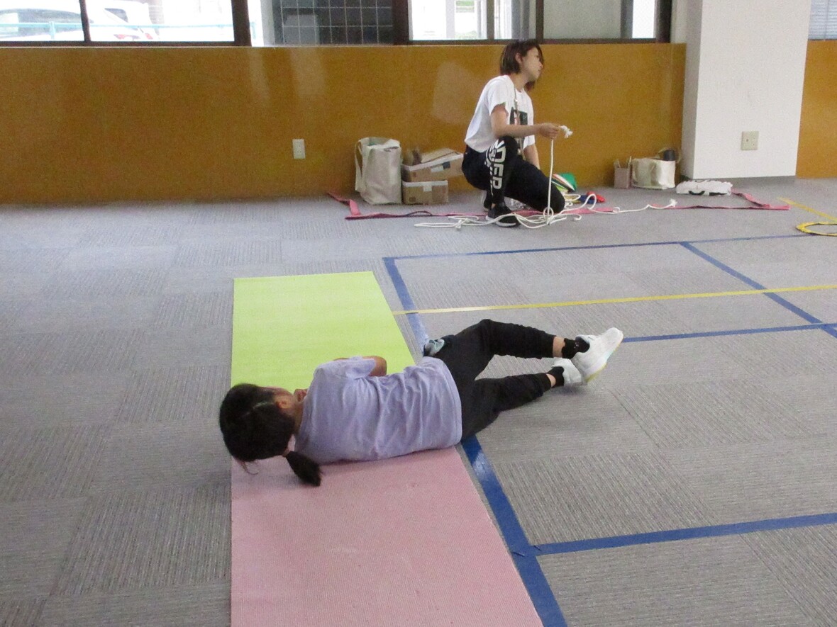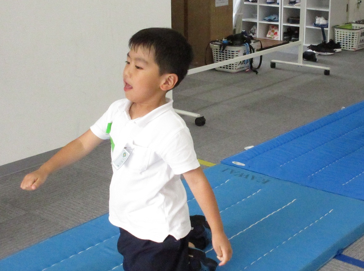2024年06月06日(木) スタッフブログ ナツミ先生とフィットネス!! 今日はナツミ先生とフィットネス。マットの上を転がったり、膝立ちで歩いたり、体幹を鍛えるいろいろな運動をしました。二人で向かい合って、全身を使って行う「からだジャンケン」も楽しかったね。 ごろごろ・・・ 膝立ちの姿勢は体幹をしっかり使います ジャンケン!・・・「チョキ」の勝ち 「チョキ」であいこ!