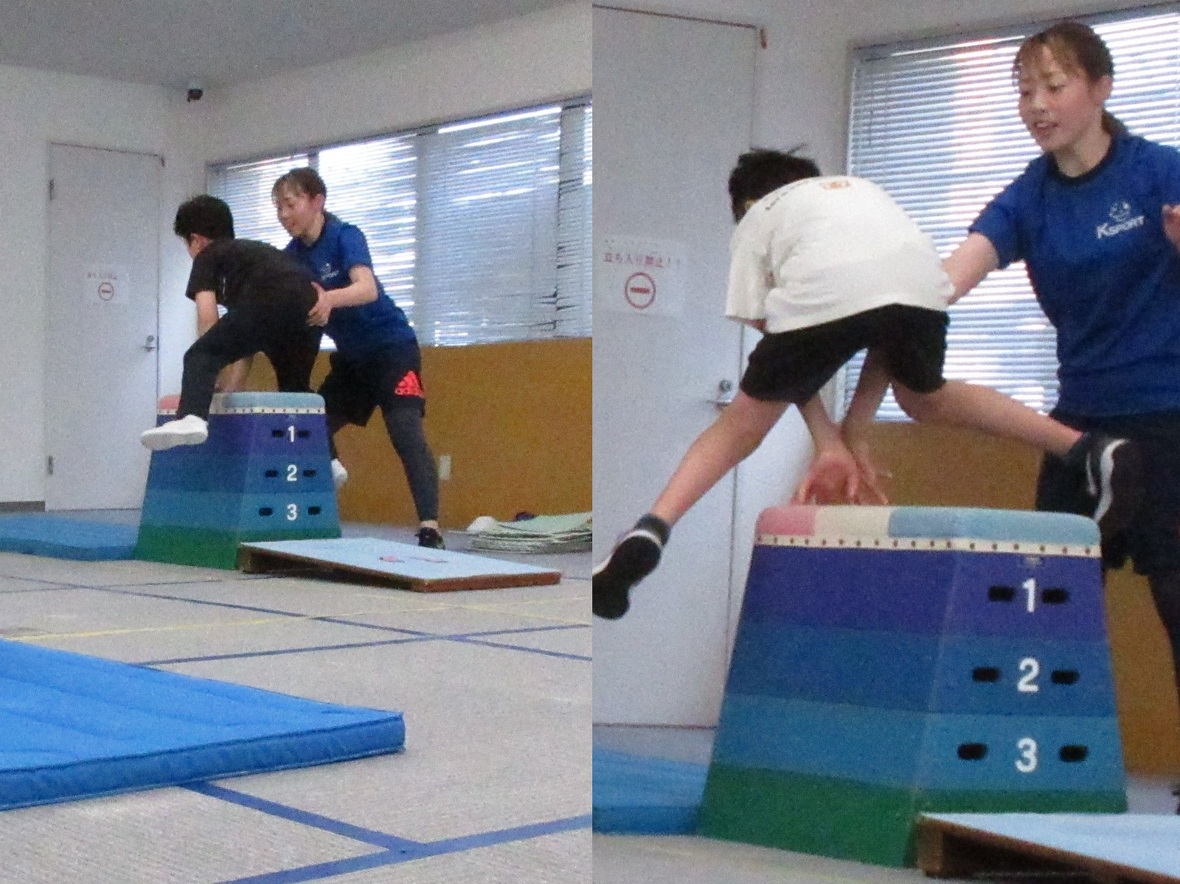 2024年06月14日(金) スタッフブログ 今日はとび箱を練習しました。 今日はとび箱の練習をしました。準備運動では、しっかりジャンプをしたり、マット運動で前回りをしたり・・・。次にとび箱を使わずにイメージづくり・・・!最後はしっかりとび箱を跳んでみました。 移動しながらジャンプ!ジャンプ! 前回りもしっかり 踏切板を使ってイメージづくり しっかり足を開いて・・・ 最後は開脚とびの練習をしました