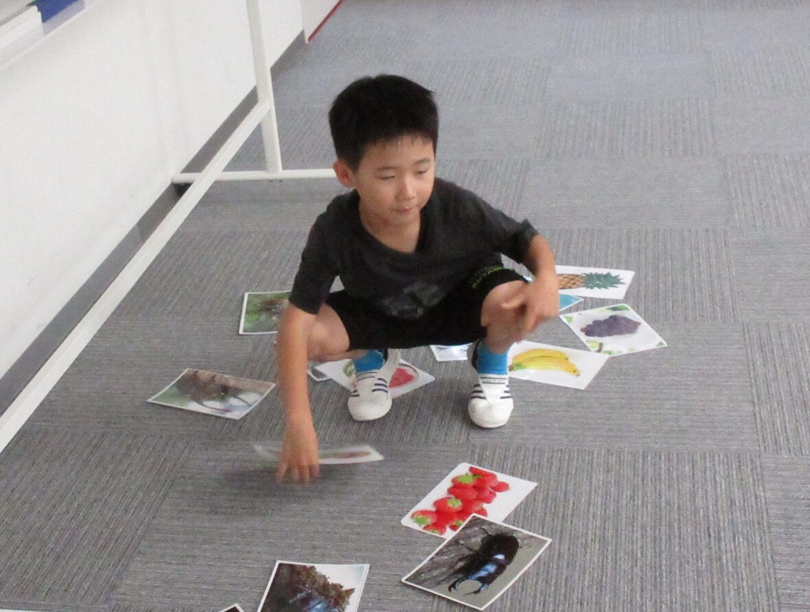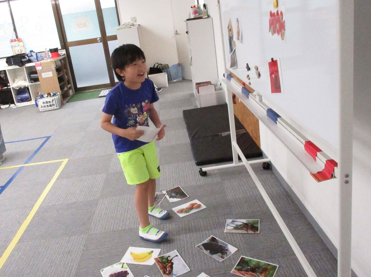 2024年06月17日(月) スタッフブログ 楽しくお勉強♬ 床に拡げたカードから答えを探して、ホワイトボードに・・・。子どもたちが大好きな学習カードプログラムです。色、形、数字といったシンプルなものから、動物や植物のイラストまで難易度を一人一人の子どもに合わせて出題できます。さあ今日もがんばろう!!! どれにしようかなあ? 手にしているのは、こどもが大好きな「ヘラクレス・・・?」 これはどっちかな? ミニハードルを上手に跳び越えて