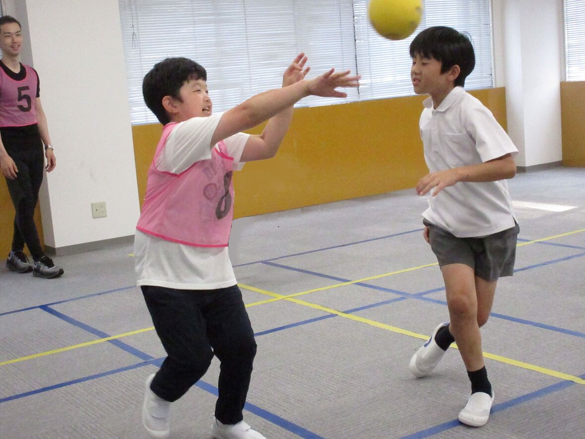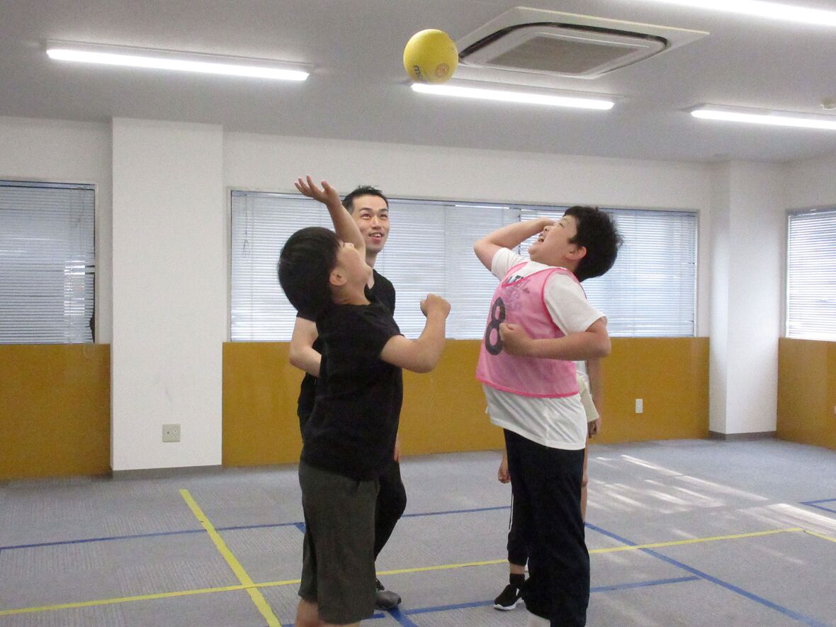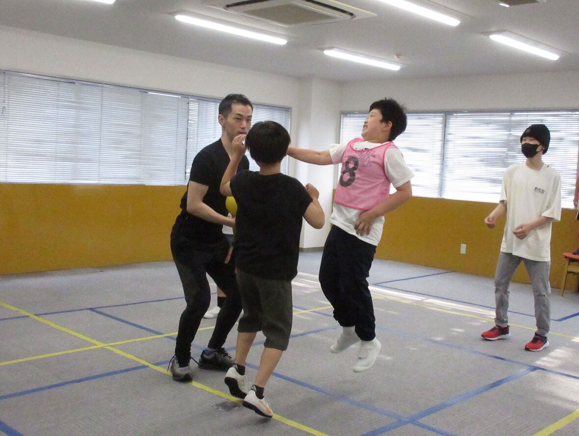2024年06月19日(水) スタッフブログ バスケットボールをしました! フジイ先生との運動遊びでバスケットボールにチャレンジ。今日はポートボールのように、椅子の上に立った子ども(ゴールマンと呼びます)がゴールの代わりをしてゲームをしました。いつものように白熱した展開になりましたよ!!バスケットボールの後は「ダルマさんがころんだ!」を楽しみました。 ナイスパス! ジャンプボールも迫力がありました 最後は先生がオニになって「ダルマさんがころんだ」を楽しみました
