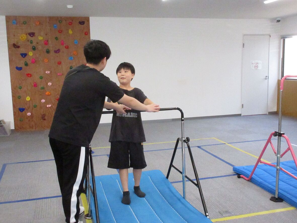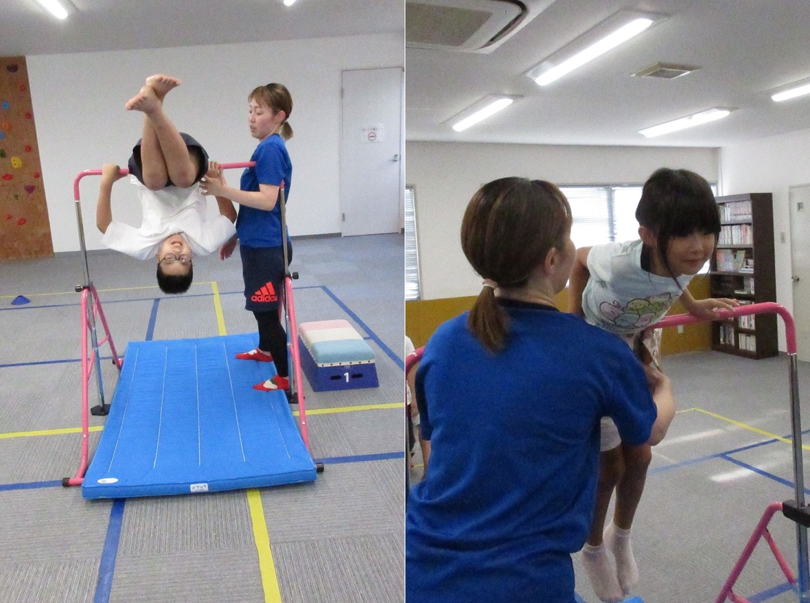 2024年06月21日(金) スタッフブログ 鉄棒にチャレンジ!!! 今日はミポ先生と鉄棒にチャレンジしました。どんなスポーツも基本は大切です。鉄棒では、しっかり腕で体を支えること(腕支持)と回転の感覚をつかむこと。準備運動でも倒立前転により、腕で支えてから、回転をする練習を取り入れてみました。 まずは準備運動で、倒立前転 前回りおりは回転の感覚を養います 先生の説明をよく聞いて
