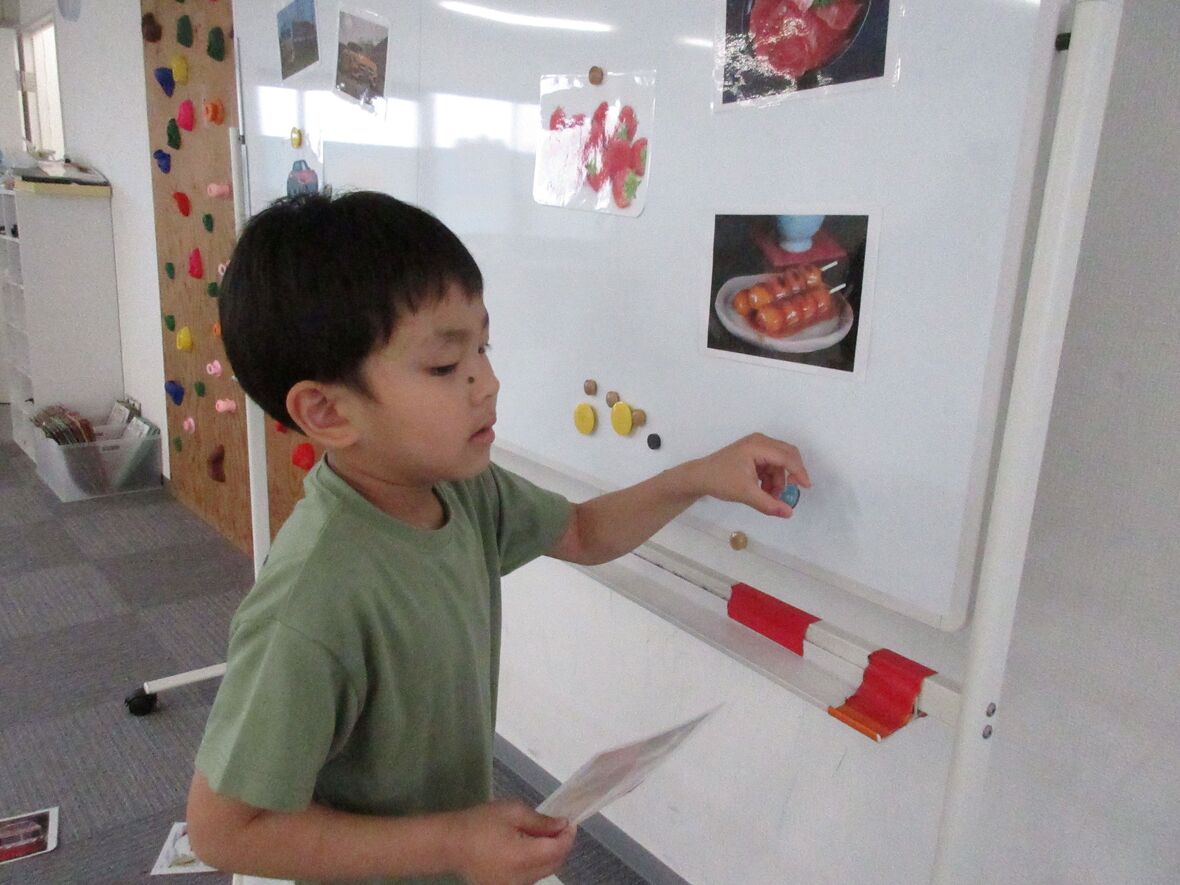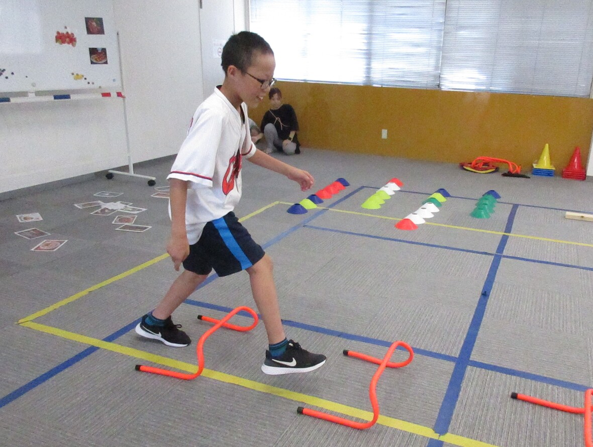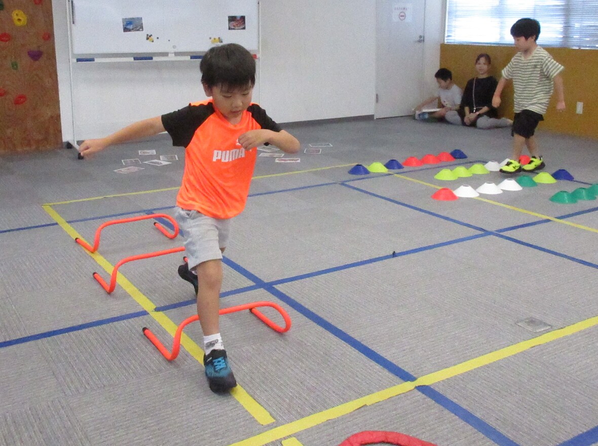 2024年08月05日(月) スタッフブログ 学習カードプログラムでしっかりお勉強! 毎週月曜日は学習カードプログラム。サーキット運動とカード学習の組み合わせです。動物や食べ物の写真と数字や文字をマッチングします。体を動かしてからお勉強をすると、より集中することができるようですよ! ミニハードルを上手に跳び越えて カードを探して・・・ 答えを考えます え~っと? 平均台のバランスも頑張っています スポーツ園名物”オセロ”いわゆるカードめくりゲームも楽しみました!