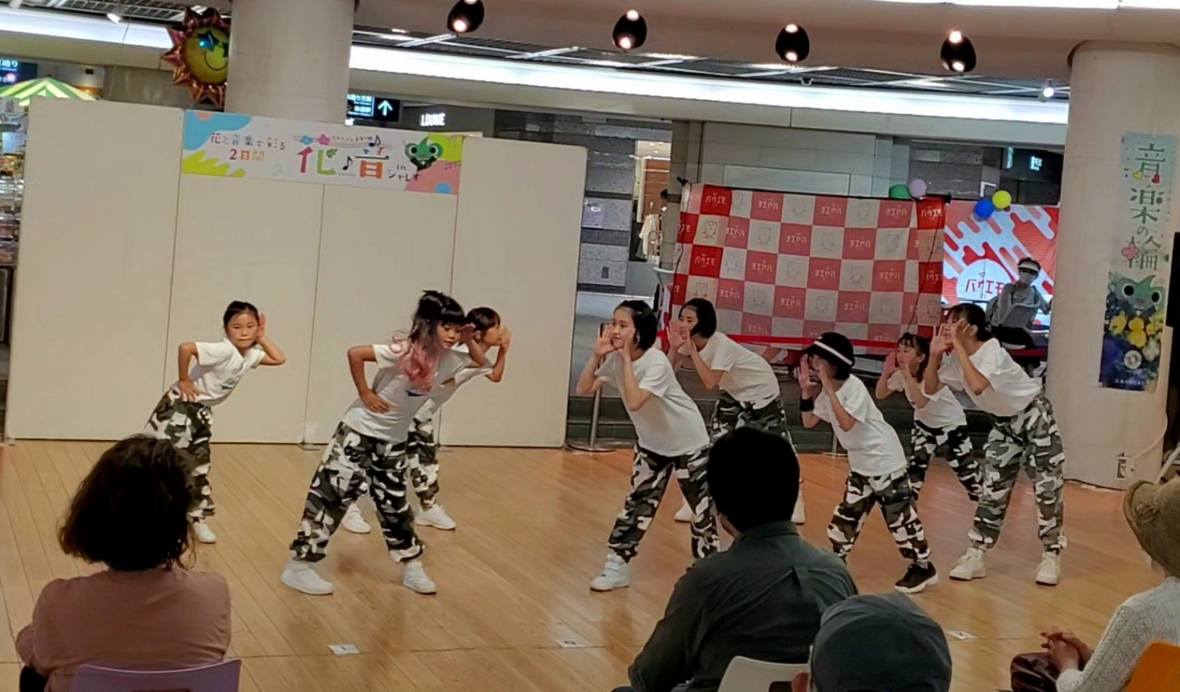 2022年05月04日(水) スタッフブログ 花♪音inシャレオのダンスパフォーマンスに出演しました! 本日、シャレオにてダンスパフォーマンスを行いました♪ たくさんの方に見ていただき緊張もありましたがみんな笑顔で発表することが出来ました。 ひろチカに続き発表する機会があり子どもたちも嬉しかったと思います。 4月からは金曜日クラスも始まりこれからも皆さんの前で発表できるよう練習を頑張っていきたいと思います。 一緒にダンスを楽しみたいお友達も随時募集しております。