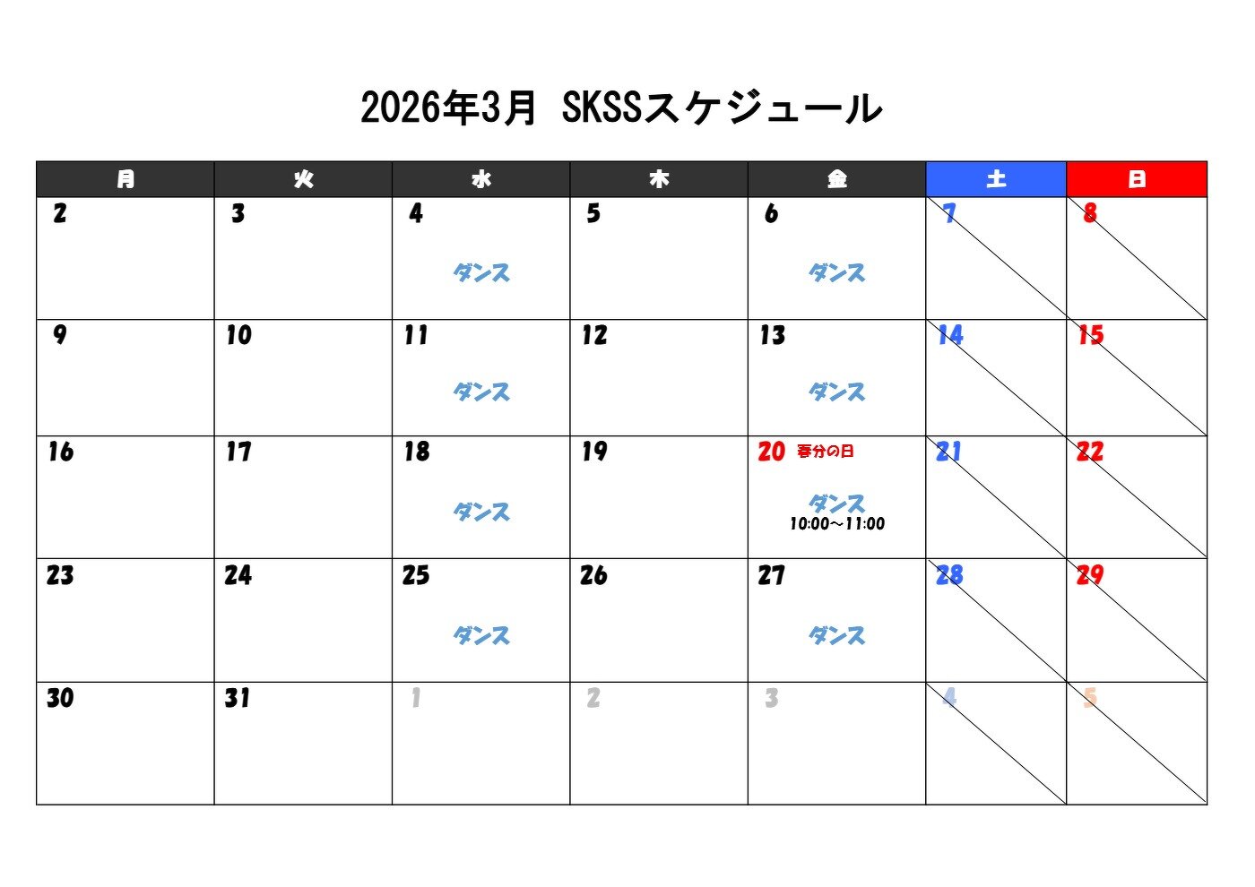 3月のスケジュールを公開しました!